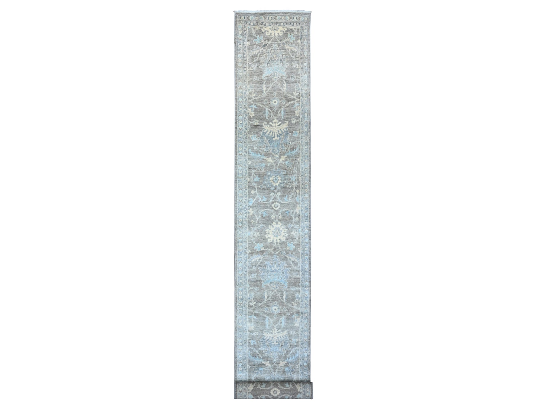 2'5" x 20'1" New Hand Knotted Grey Wool Runner Oriental Rug - MOA10289499