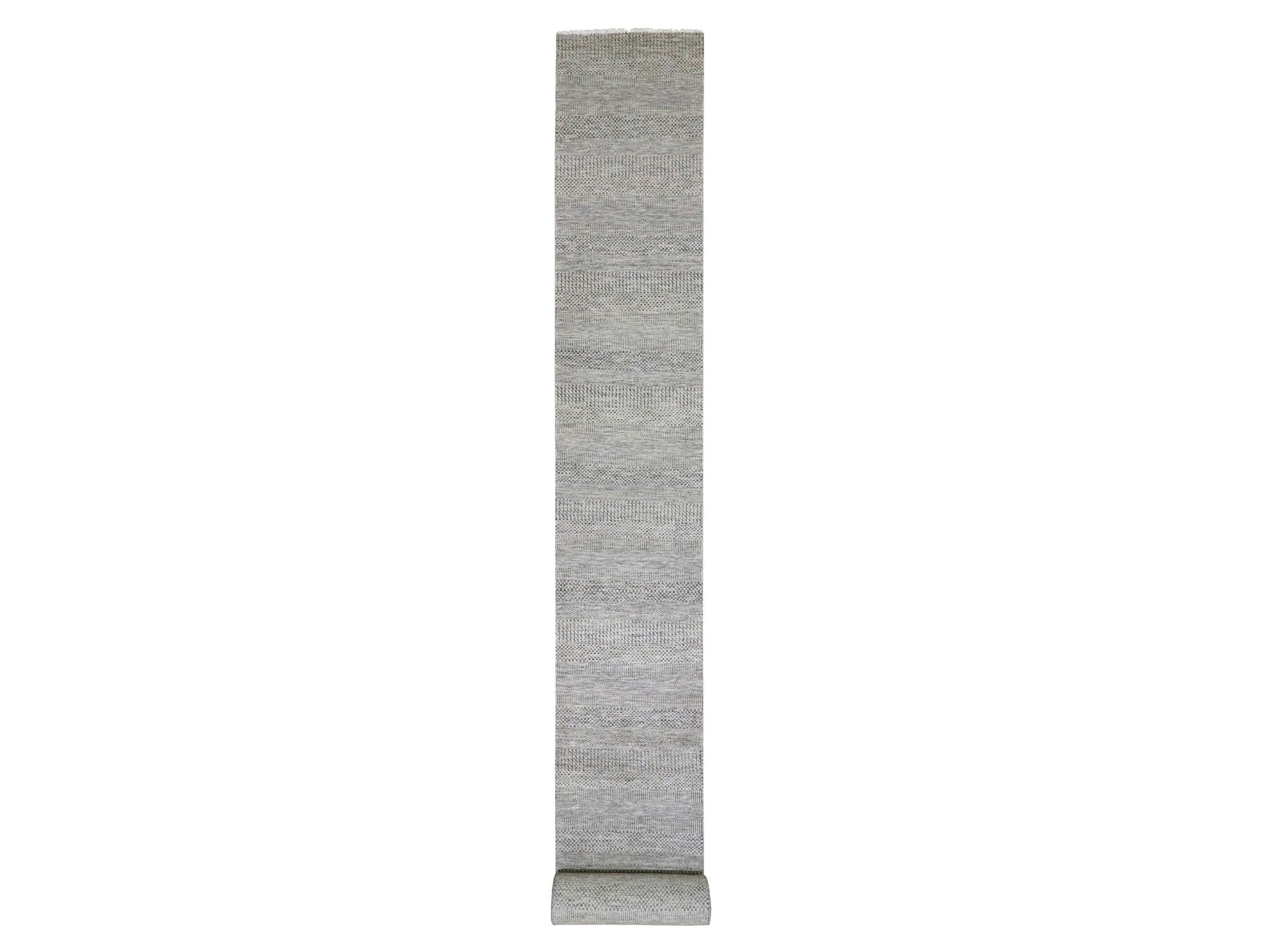2'5" x 24'3" New Hand Knotted Grey Wool Runner Oriental Rug - MOA10279570