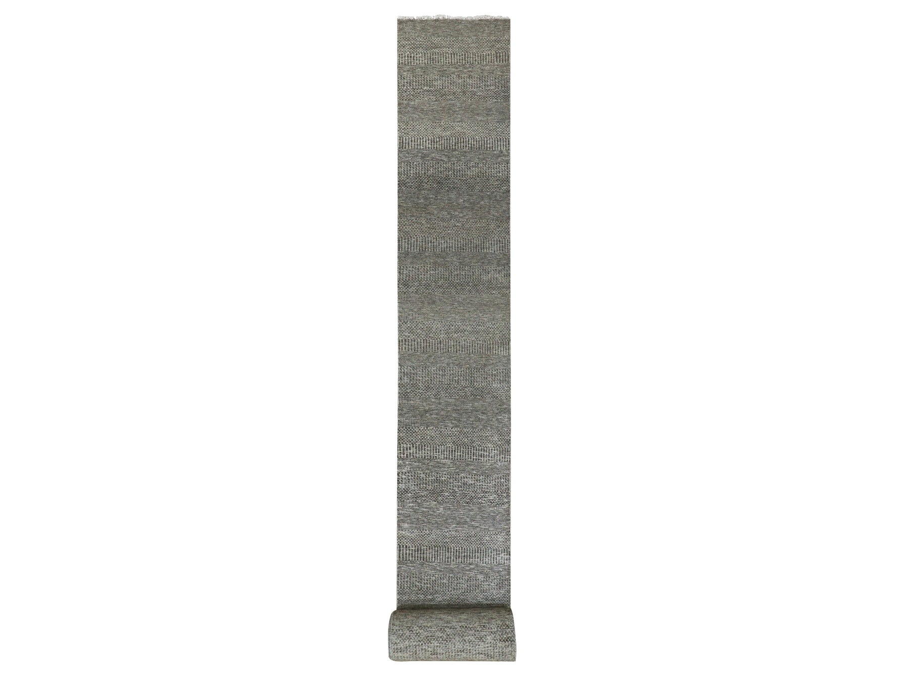 2'5" x 30'1" New Hand Knotted Grey Wool Runner Oriental Rug - MOA10279888