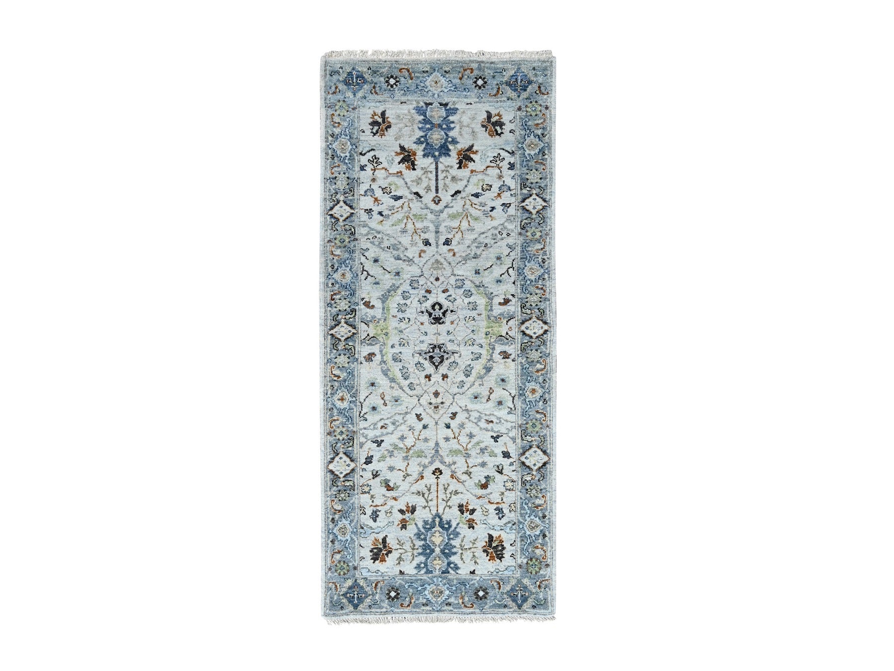 2'5" x 5'9" New Hand Knotted Grey Wool Runner Oriental Rug - MOA10284950