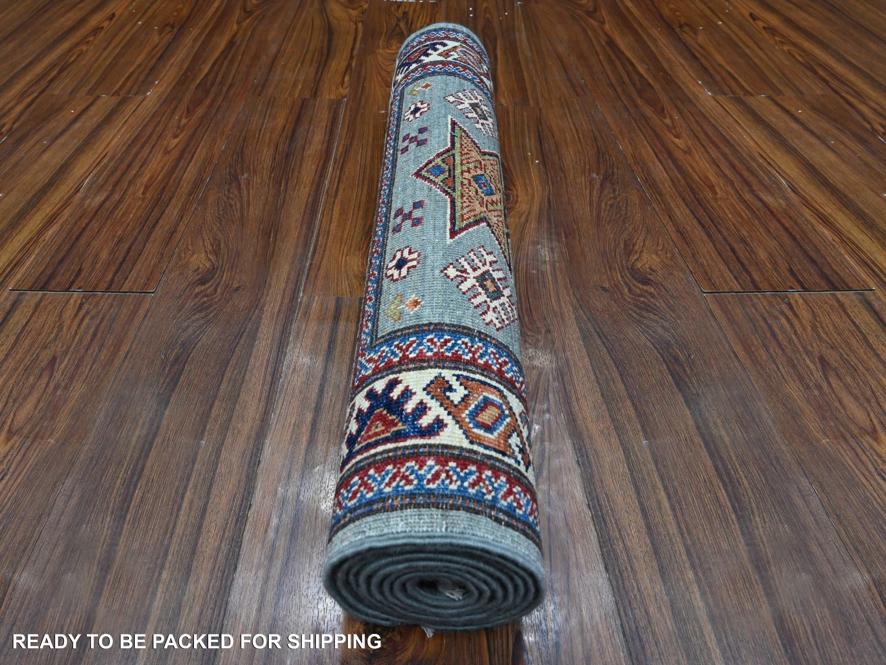 2'5" x 6'10" New Hand Knotted Grey Wool Runner Oriental Rug - MOA10289219