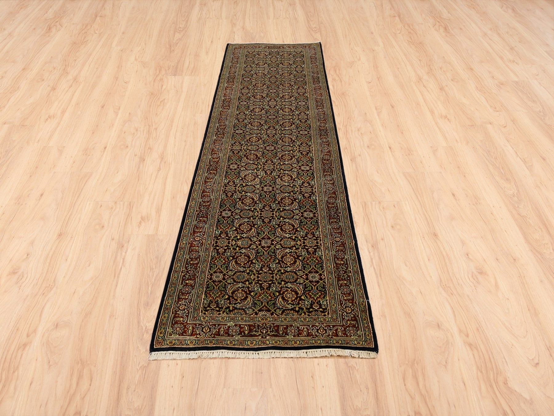 2'6" x 10'0" New Hand Knotted Black Wool Runner Oriental Rug - MOA10263006