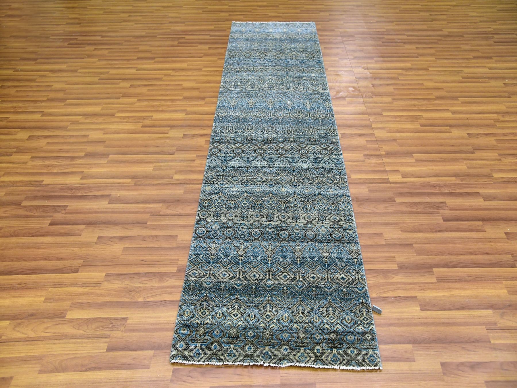2'6" x 10'0" New Hand Knotted Blue Wool Runner Oriental Rug - MOA10279494