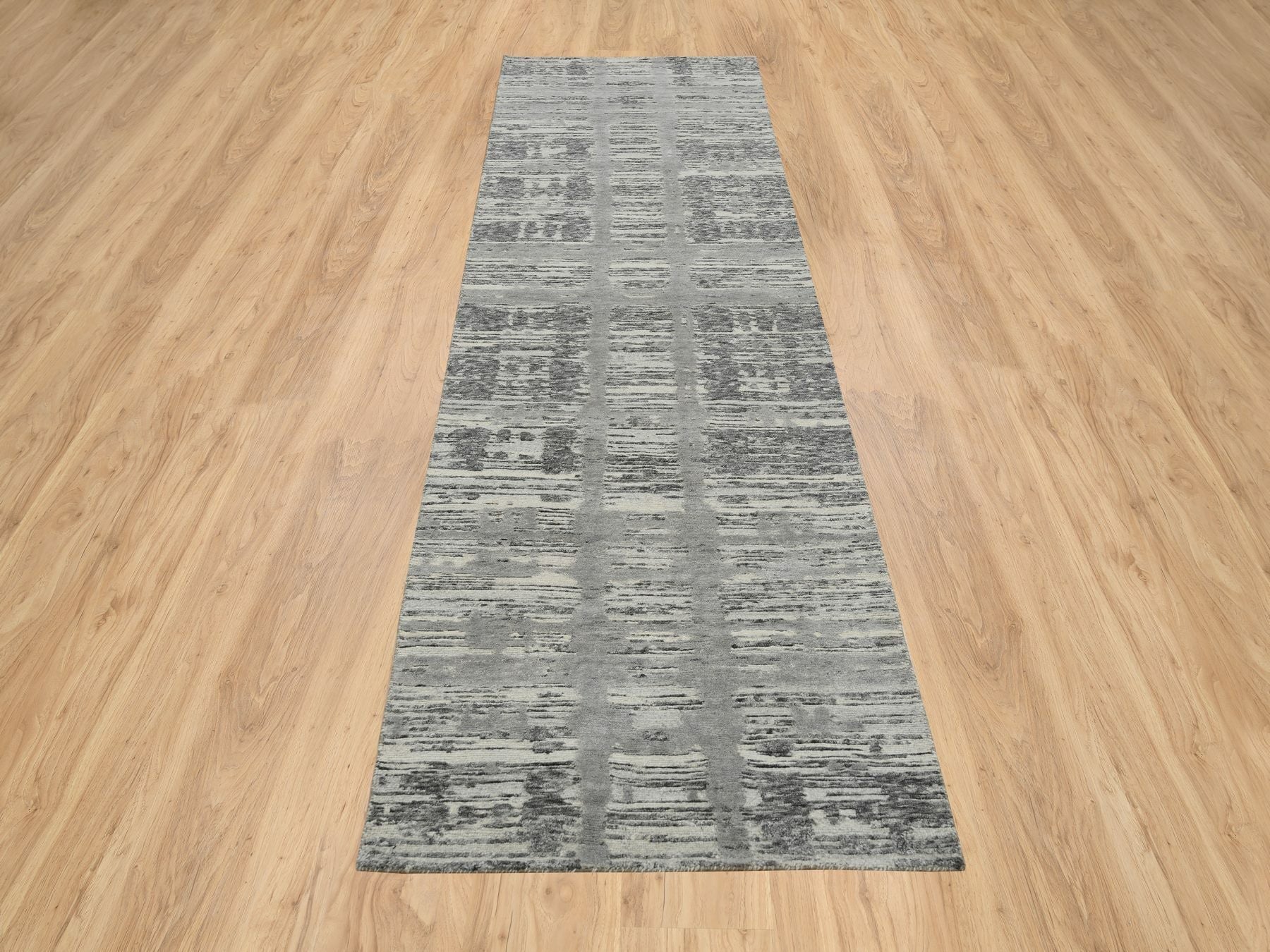 2'6" x 10'0" New Hand Knotted Grey Wool Runner Oriental Rug - MOA10265166