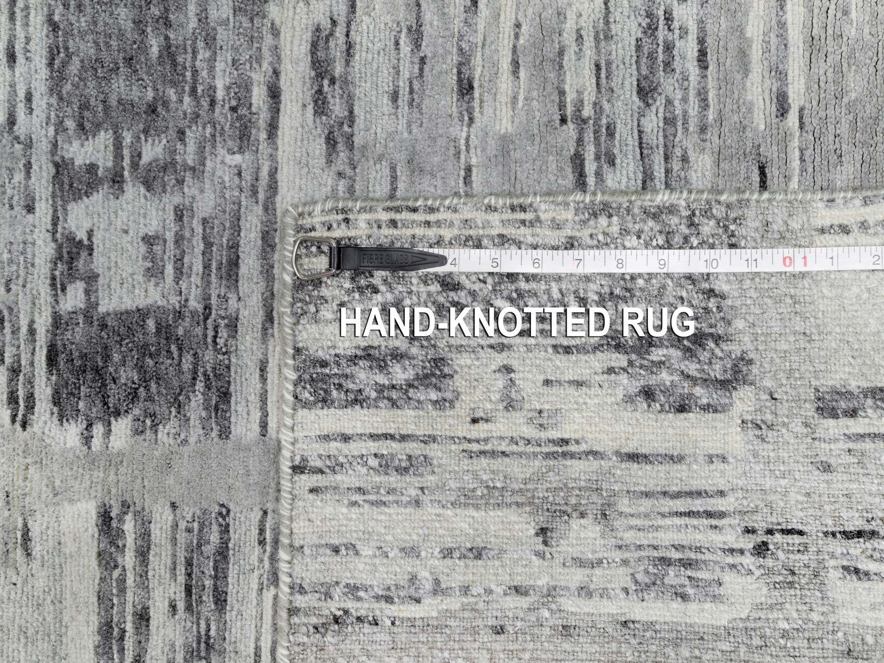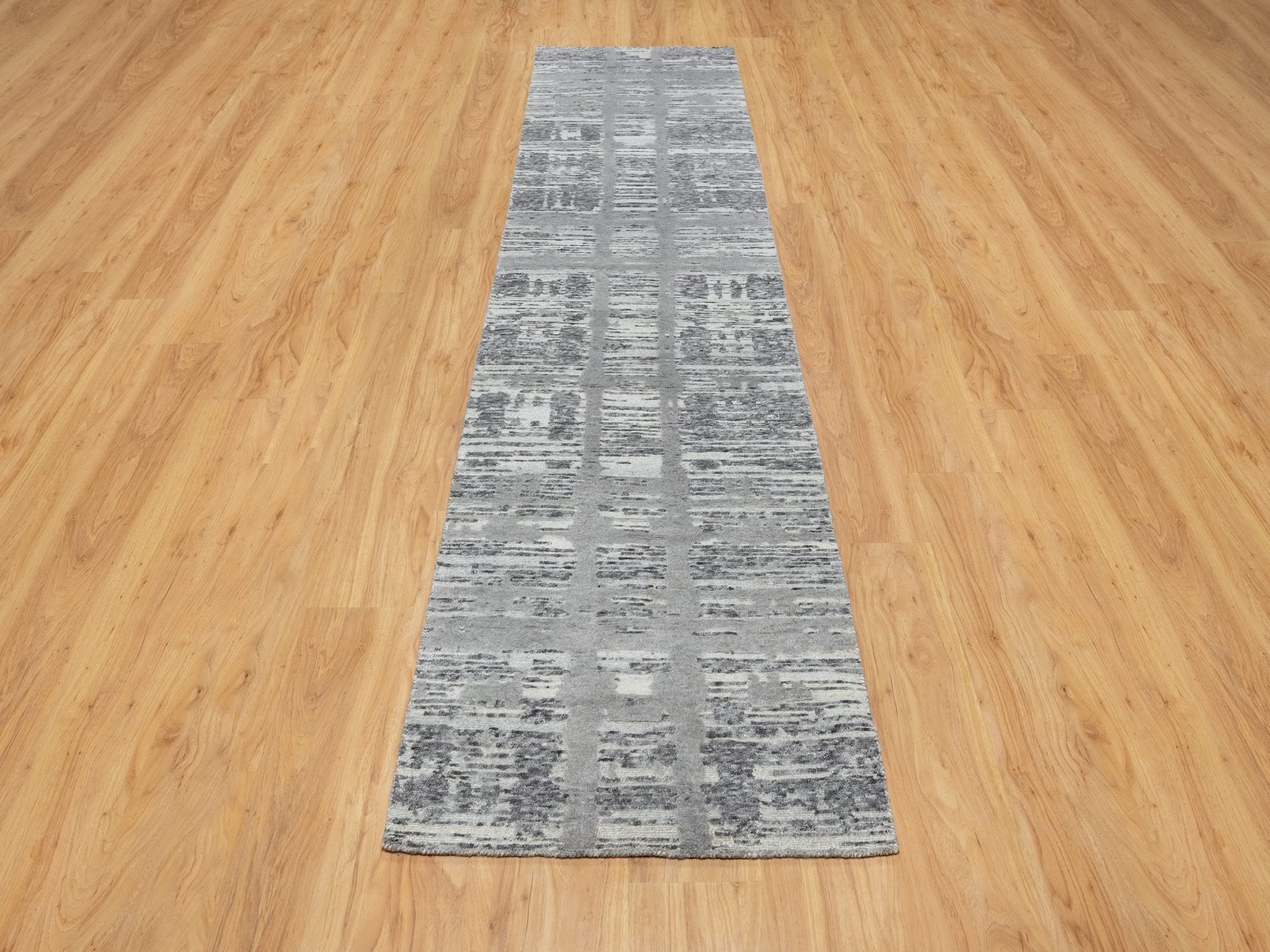 2'6" x 10'0" New Hand Knotted Grey Wool Runner Oriental Rug - MOA10290843
