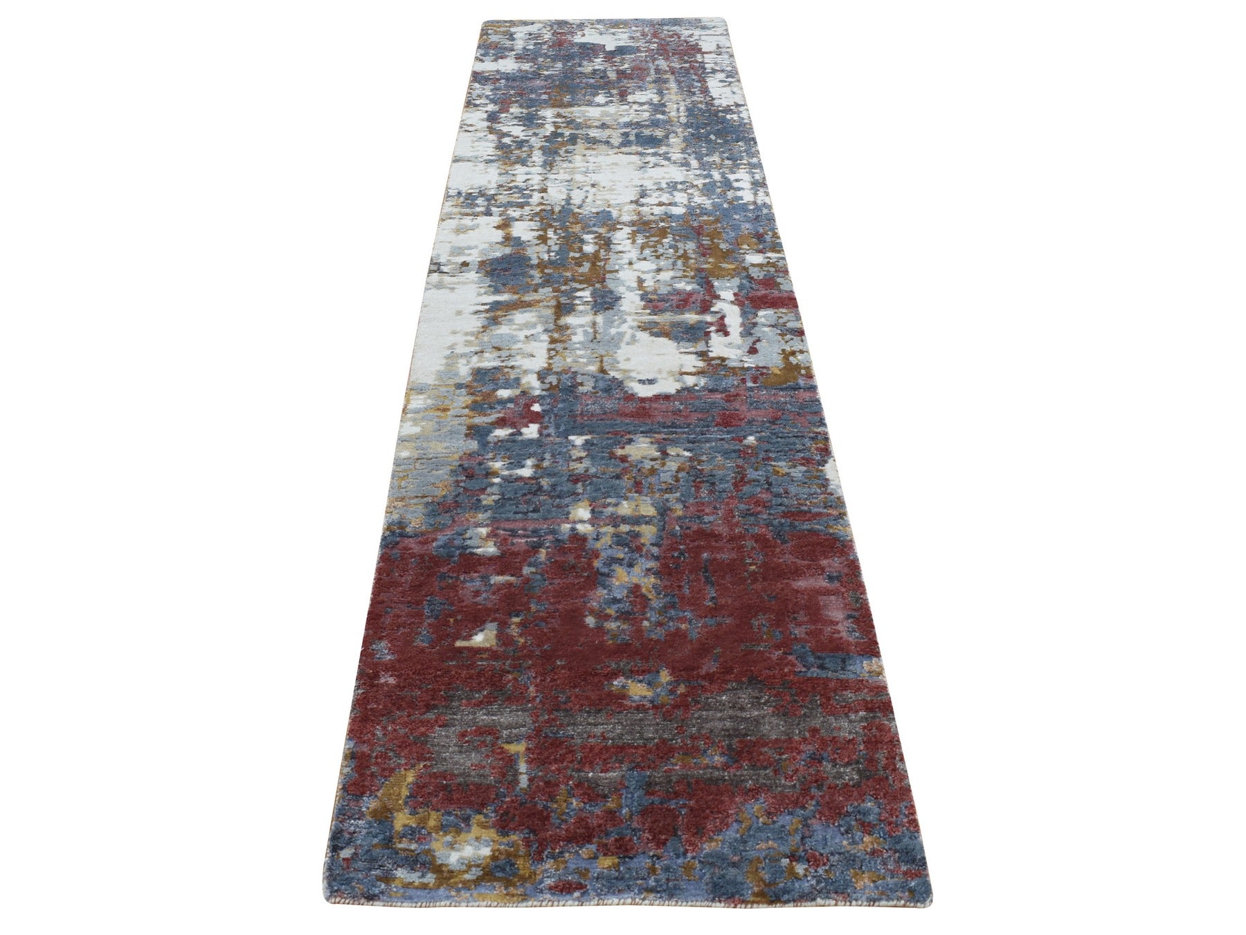 2'6" x 10'0" New Hand Knotted Grey Wool & Silk Runner Oriental Rug - MOA10287277