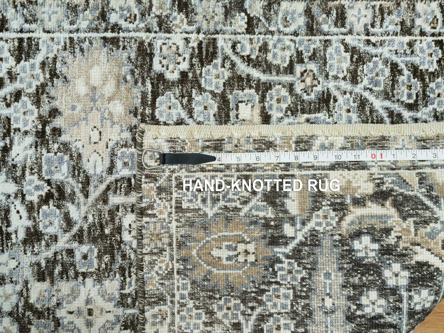 2'6" x 10'0" New Hand Knotted Grey Wool & Silk Runner Oriental Rug - MOA10290680