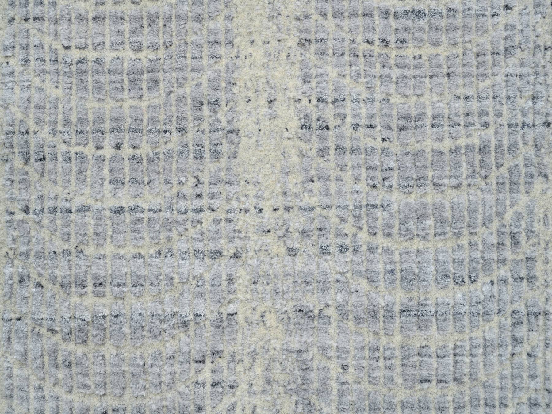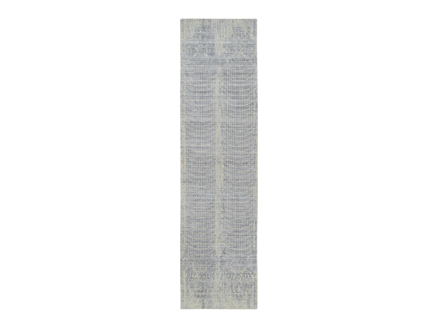 2'6" x 10'0" New Hand Loomed Grey Wool & Silk Runner Oriental Rug - MOA10263756