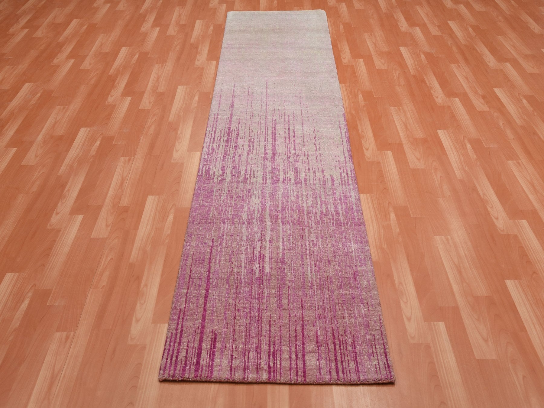 2'6" x 10'1" New Hand Knotted Pink Wool Runner Oriental Rug - MOA10275110
