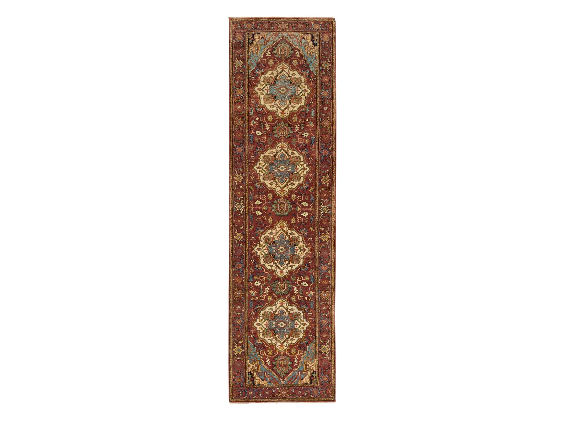 2'6" x 10'1" New Hand Knotted Red Wool Runner Oriental Rug - MOA10265466