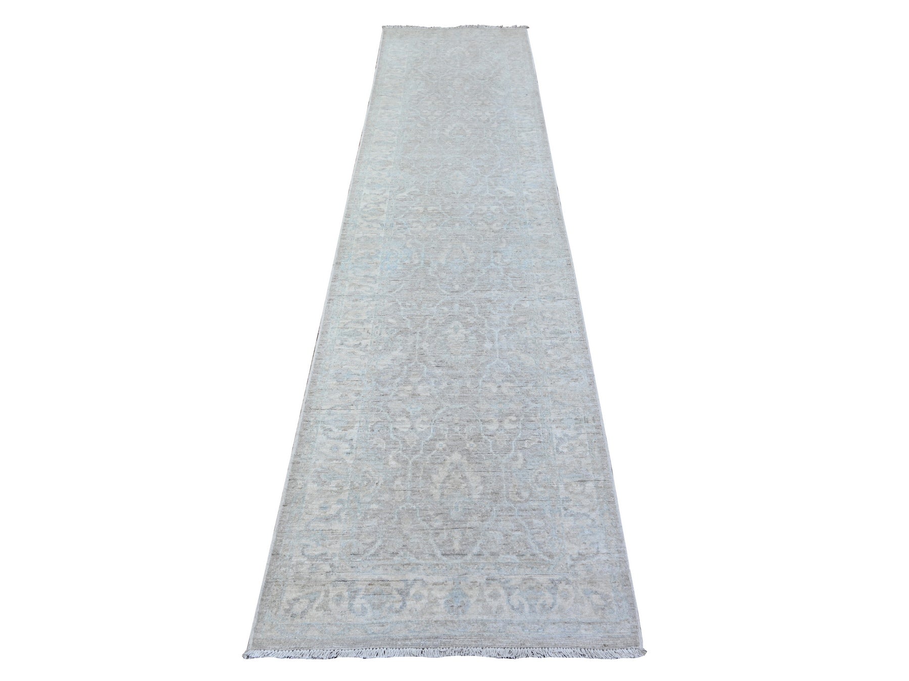 2'6" x 10'3" New Hand Knotted Grey Wool Runner Oriental Rug - MOA10288361