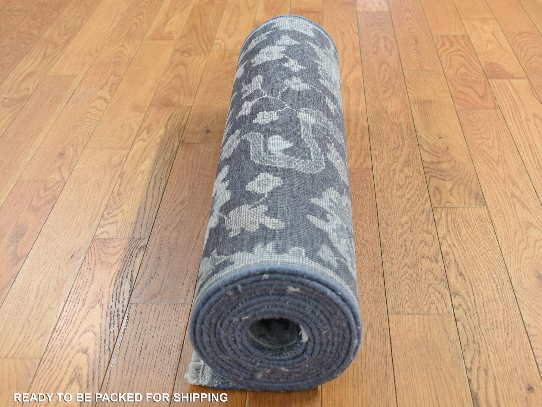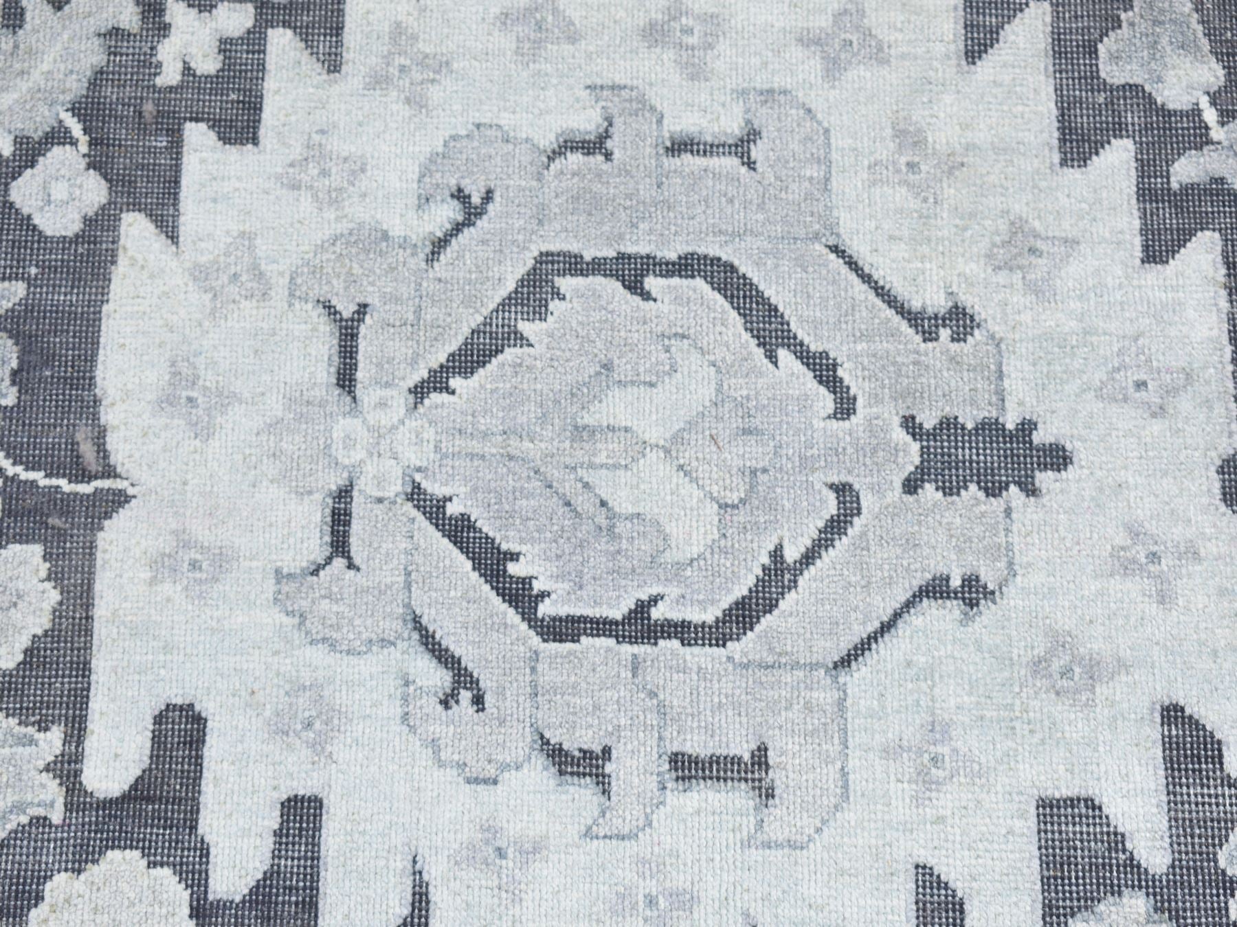2'6" x 11'10" New Hand Knotted Grey Wool & Silk Runner Oriental Rug - MOA10287307