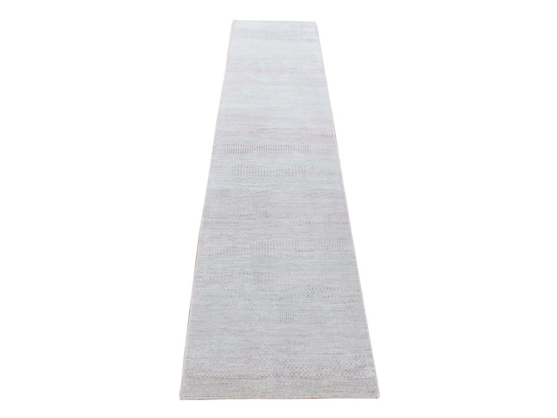 2'6" x 11'3" New Hand Knotted Grey Wool & Silk Runner Oriental Rug - MOA10280338