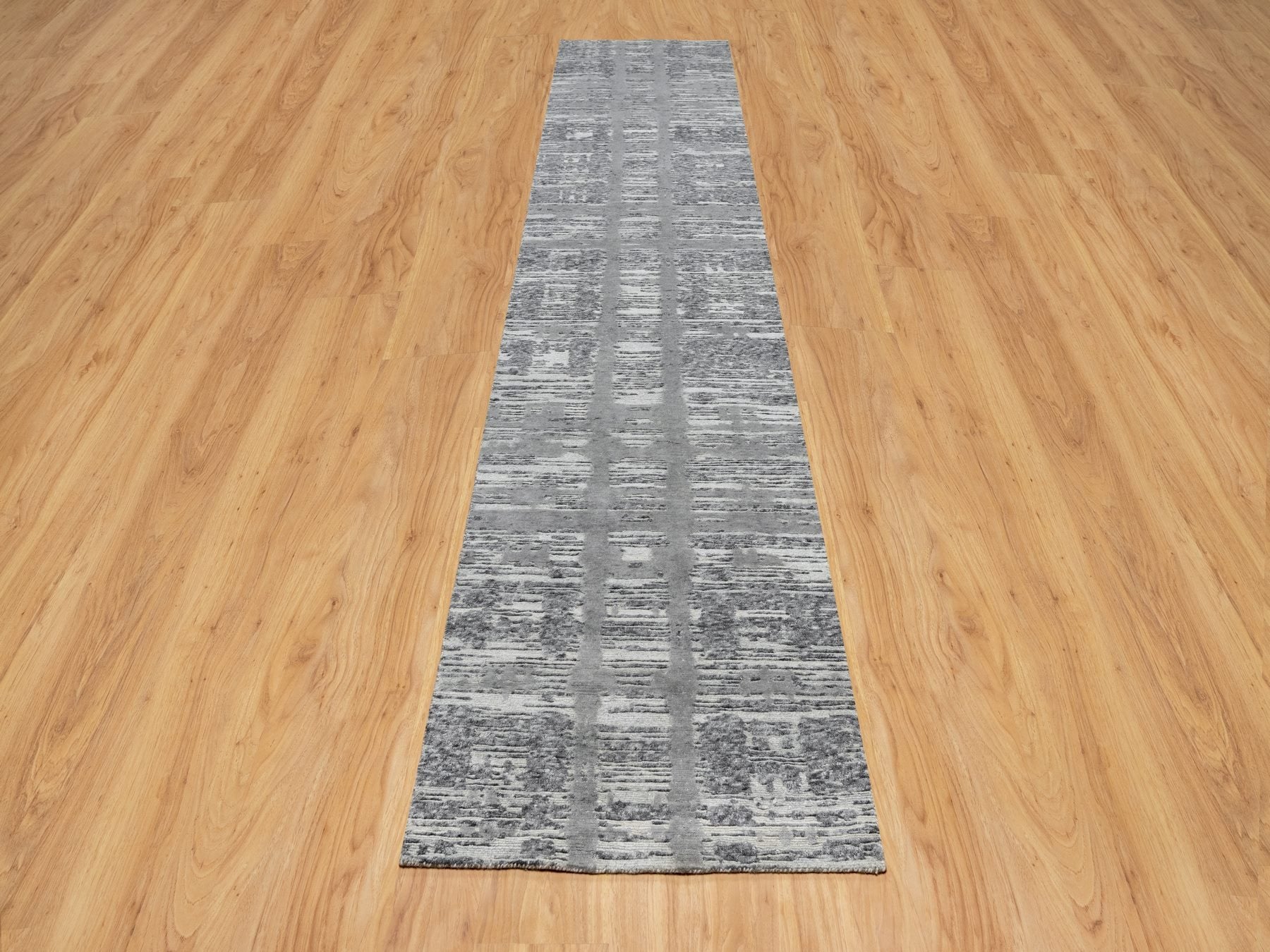 2'6" x 11'8" New Hand Knotted Grey Wool Runner Oriental Rug - MOA10290844