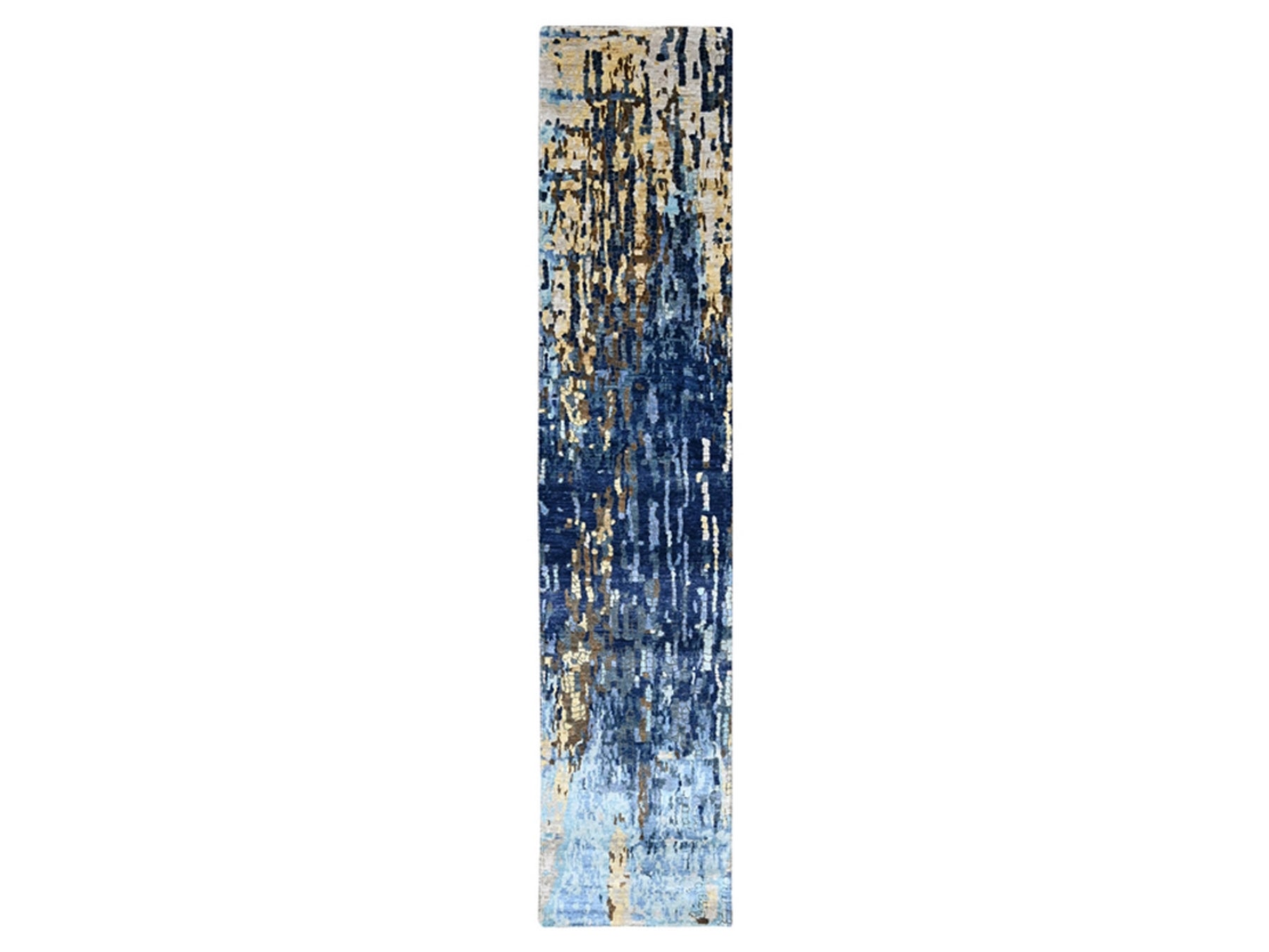 2'6" x 12'0" New Hand Knotted Blue Wool & Silk Runner Oriental Rug - MOA10210101