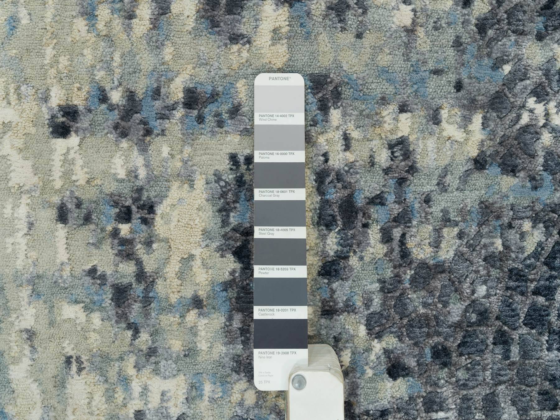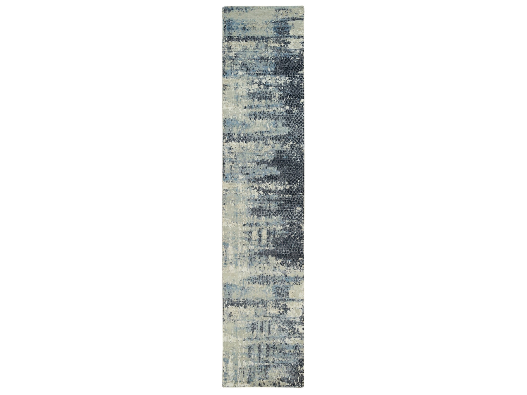 2'6" x 12'0" New Hand Knotted Grey Wool & Silk Runner Oriental Rug - MOA10290198