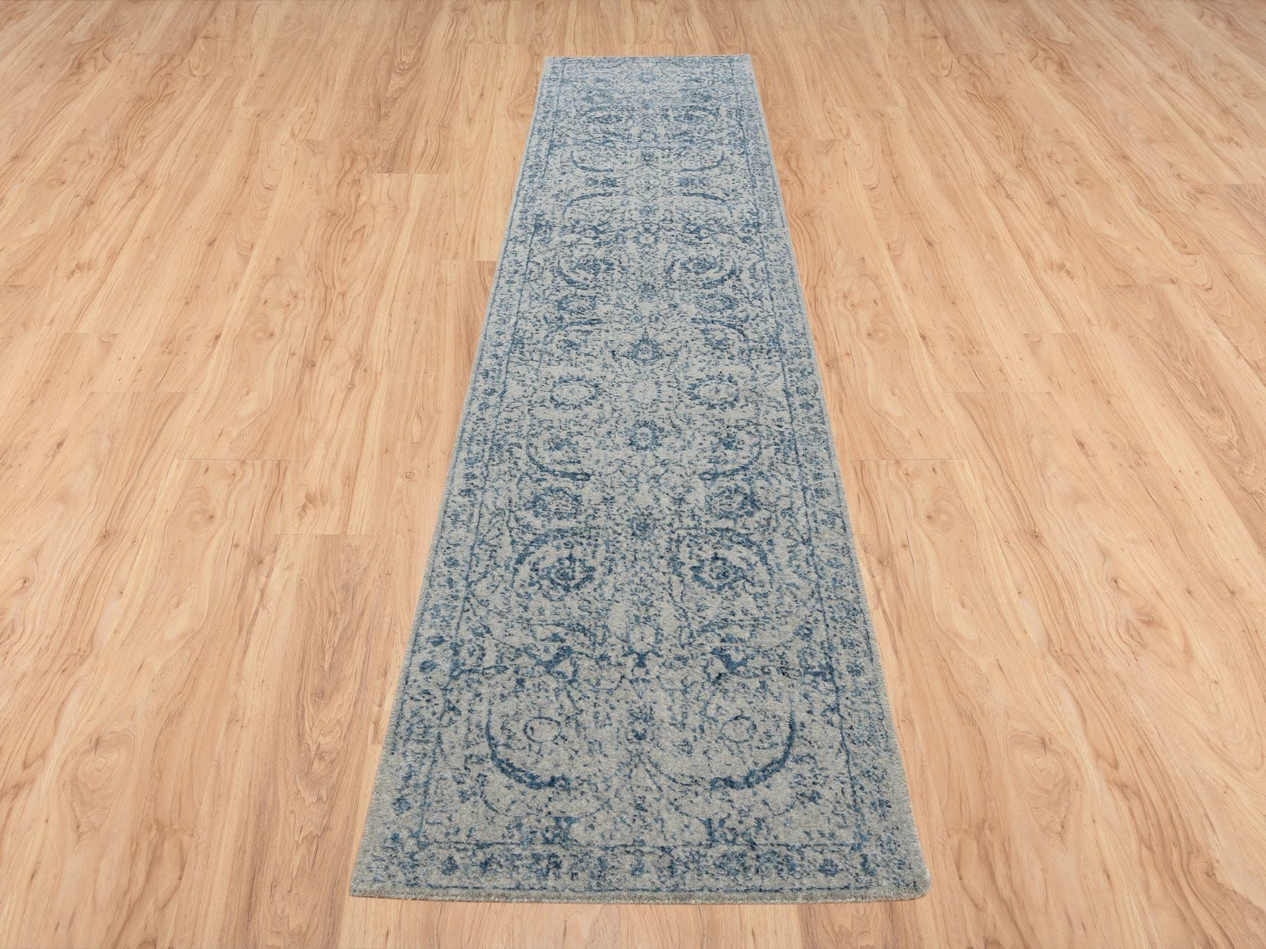 2'6" x 12'0" New Hand Loomed Blue Wool & Silk Runner Oriental Rug - MOA10263509