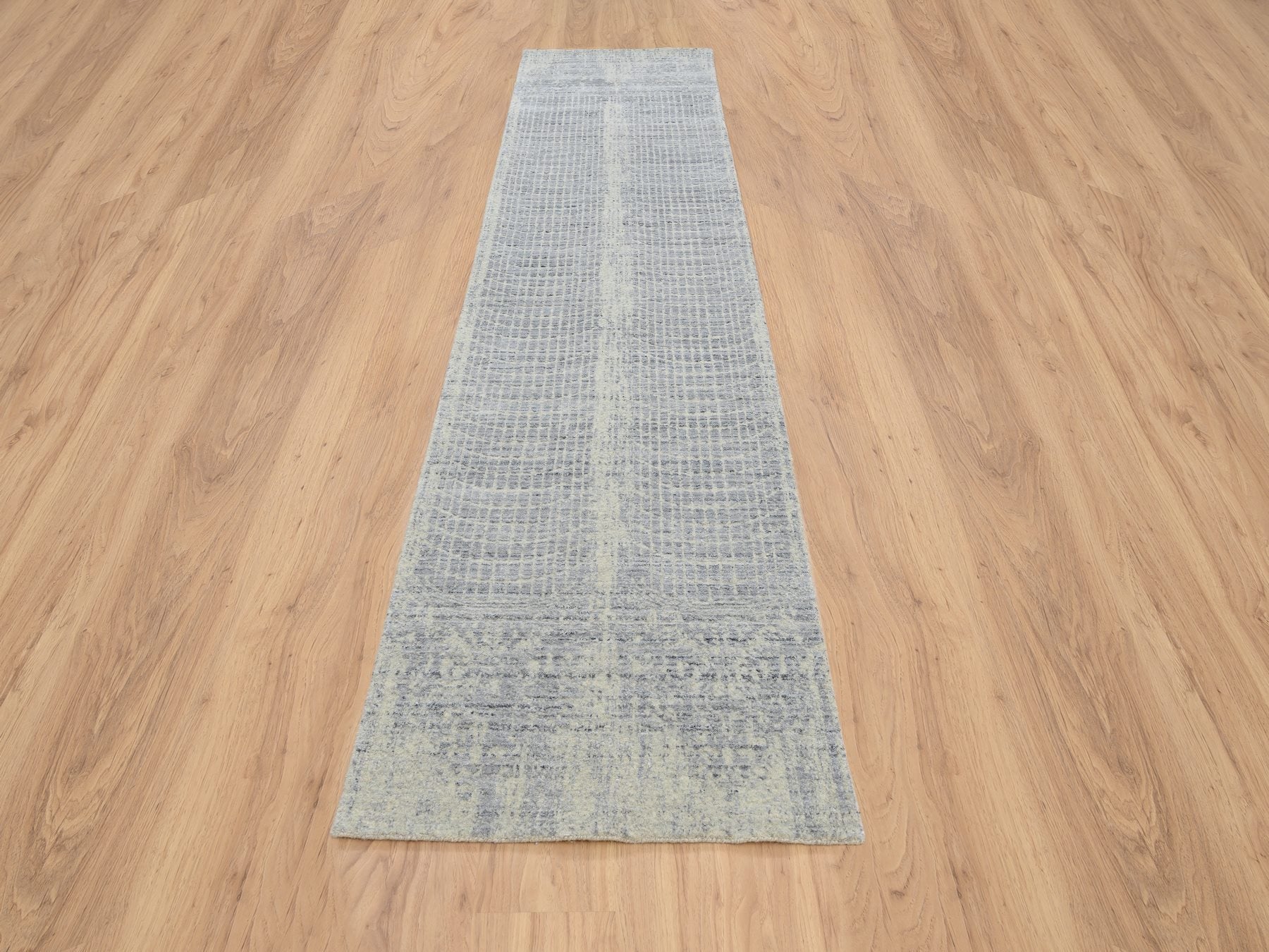 2'6" x 12'0" New Hand Loomed Grey Wool & Silk Runner Oriental Rug - MOA10263755