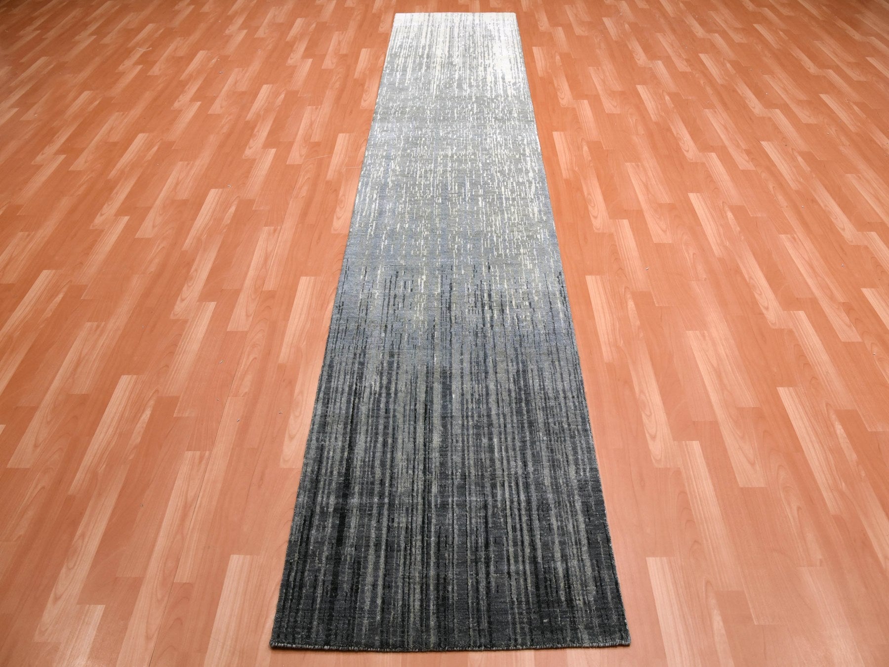 2'6" x 12'6" New Hand Knotted Grey Wool Runner Oriental Rug - MOA10275263