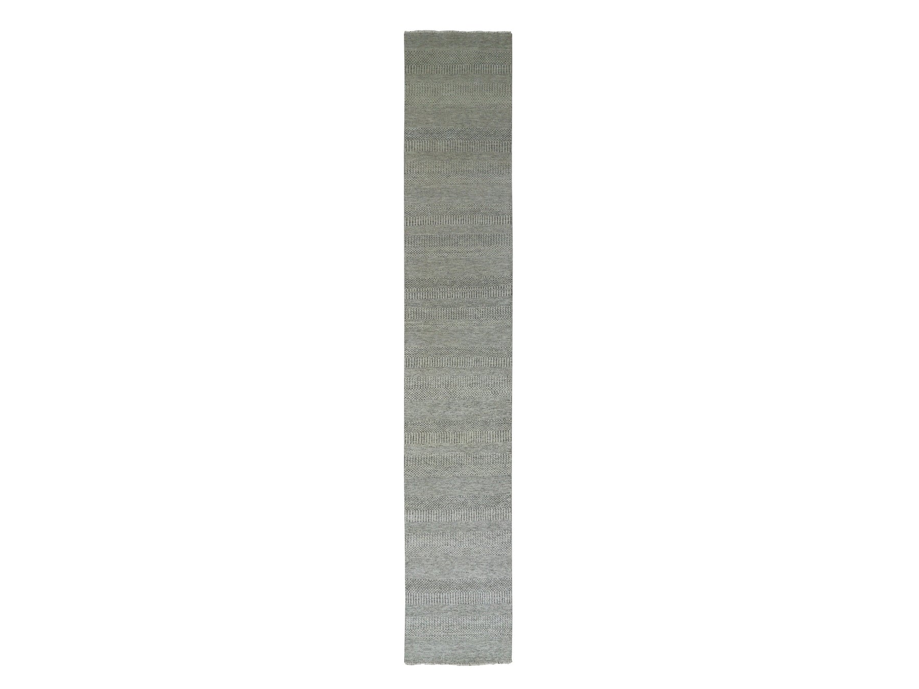 2'6" x 15'11" New Hand Knotted Grey Wool Runner Oriental Rug - MOA10279704