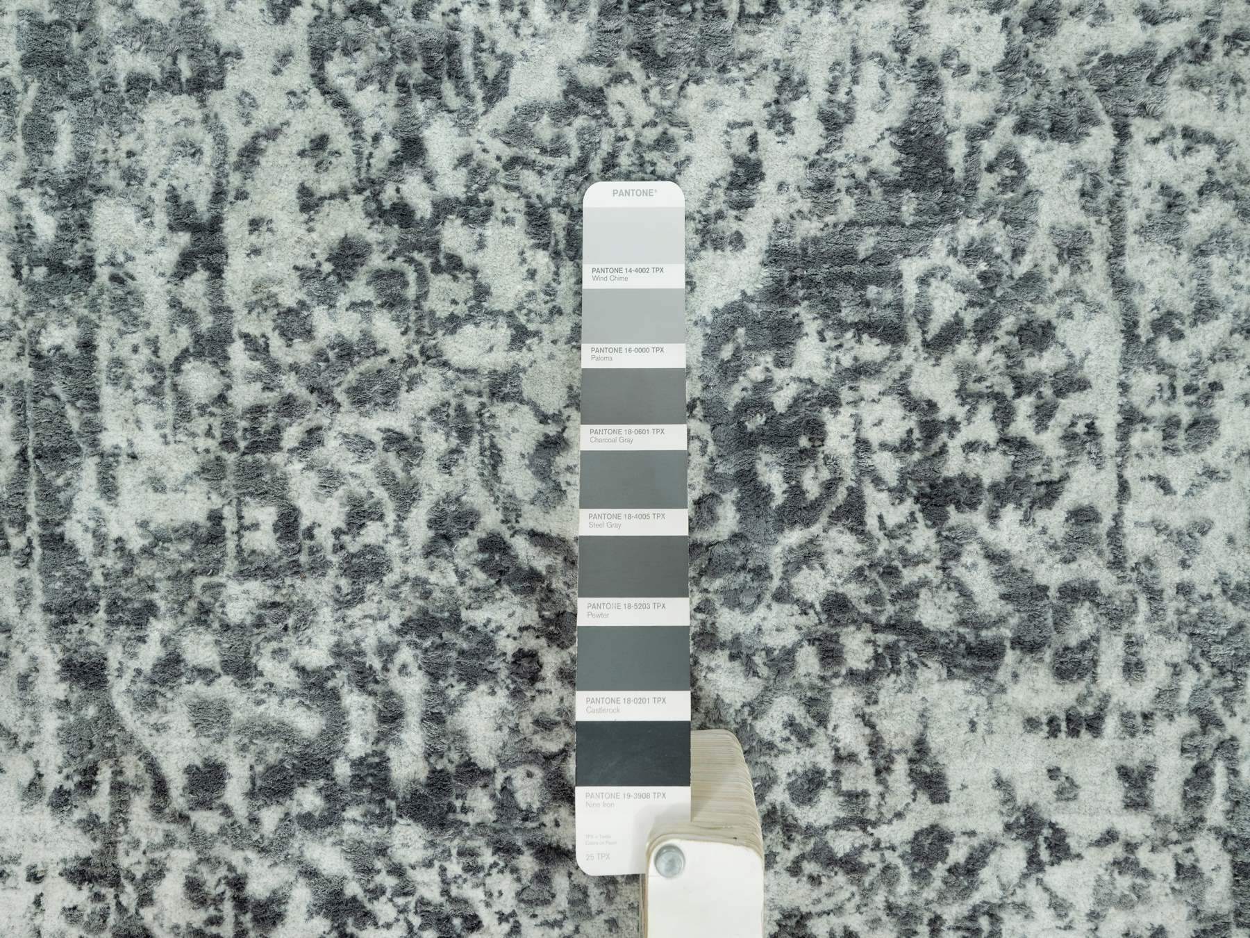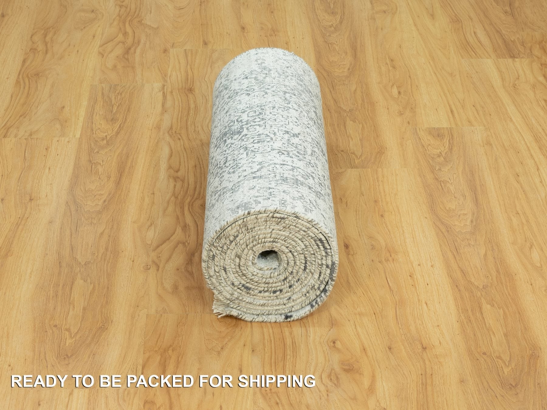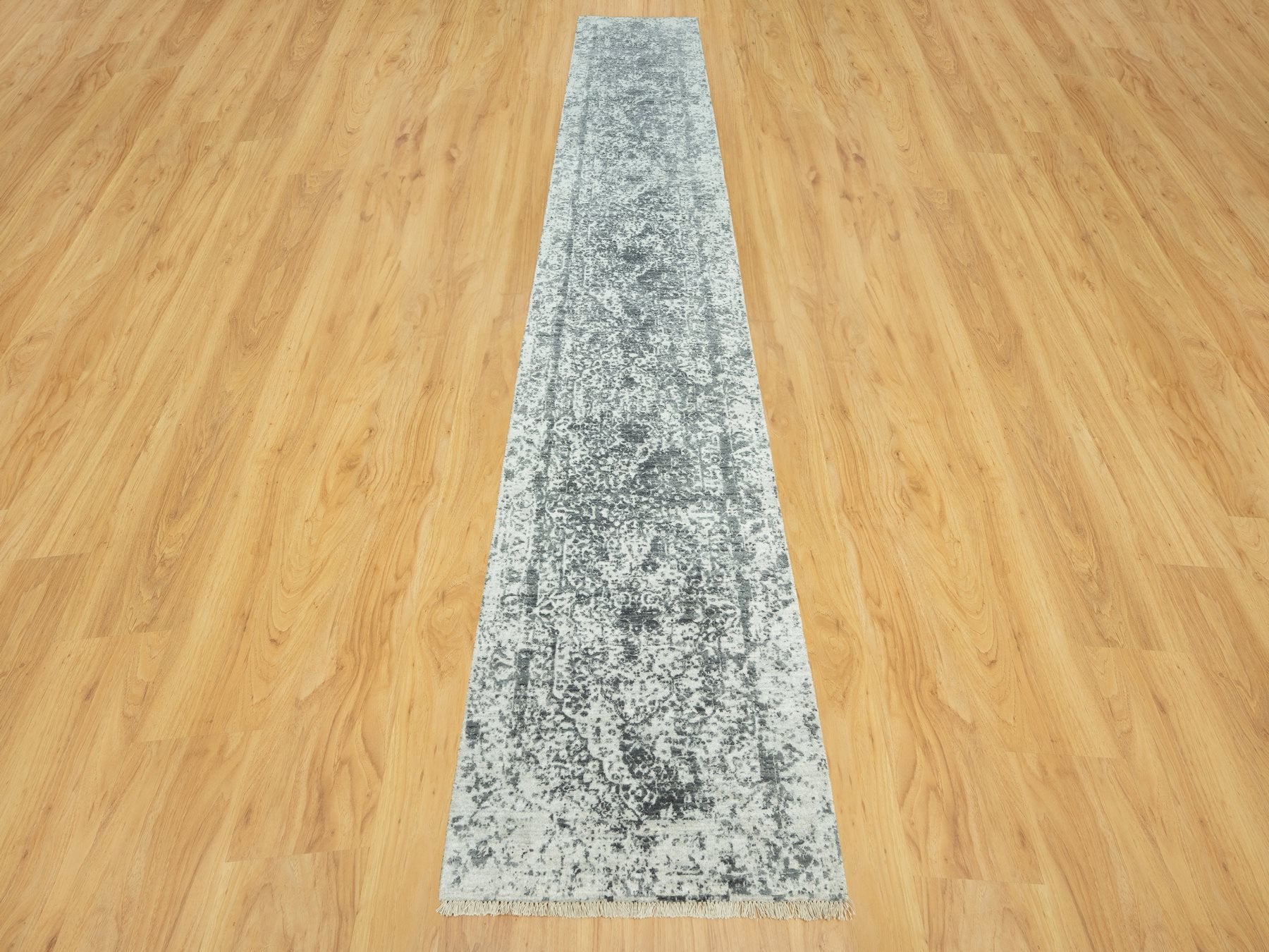 2'6" x 15'8" New Hand Knotted Grey Wool & Silk Runner Oriental Rug - MOA10290472