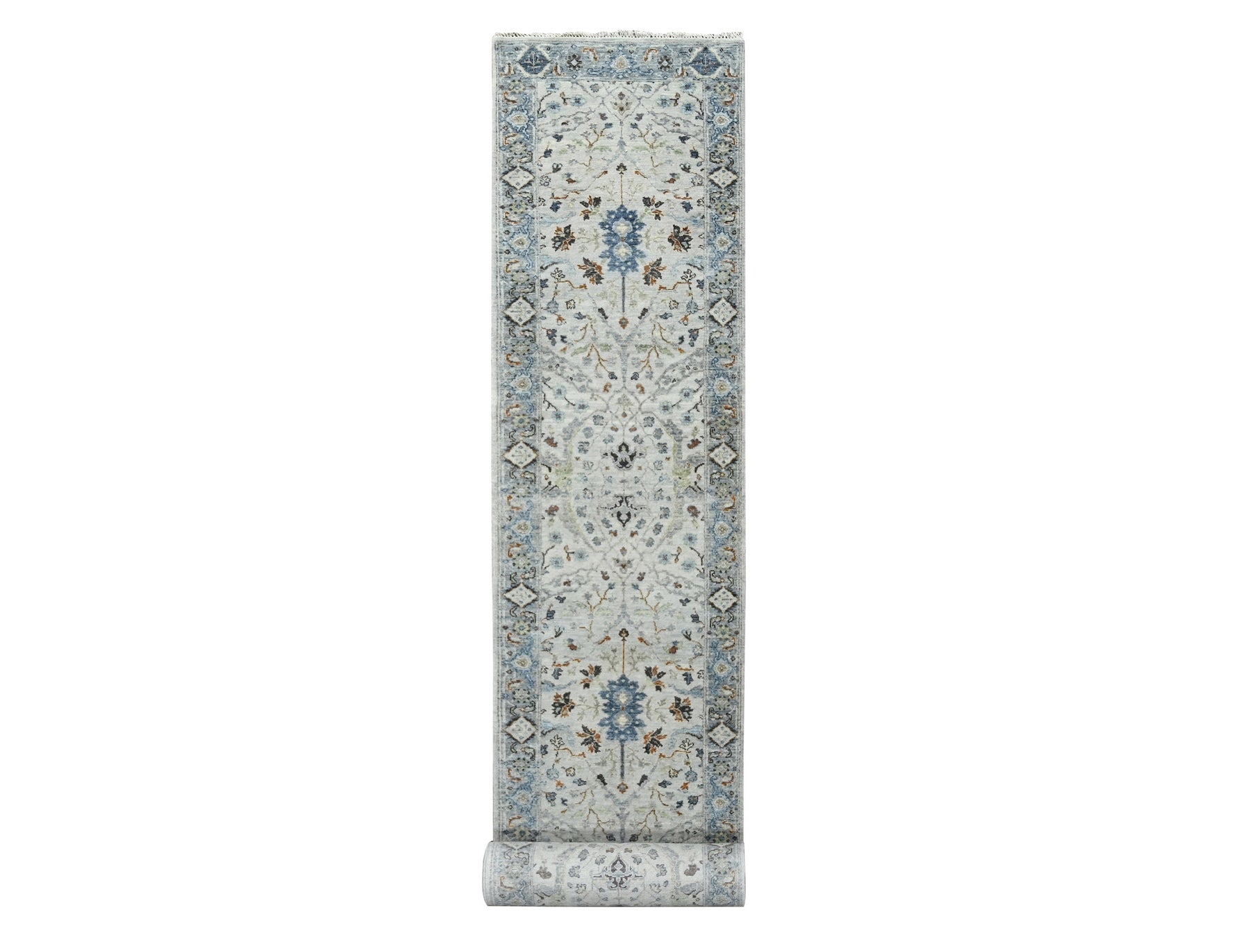 2'6" x 17'10" New Hand Knotted Grey Wool Runner Oriental Rug - MOA10284843