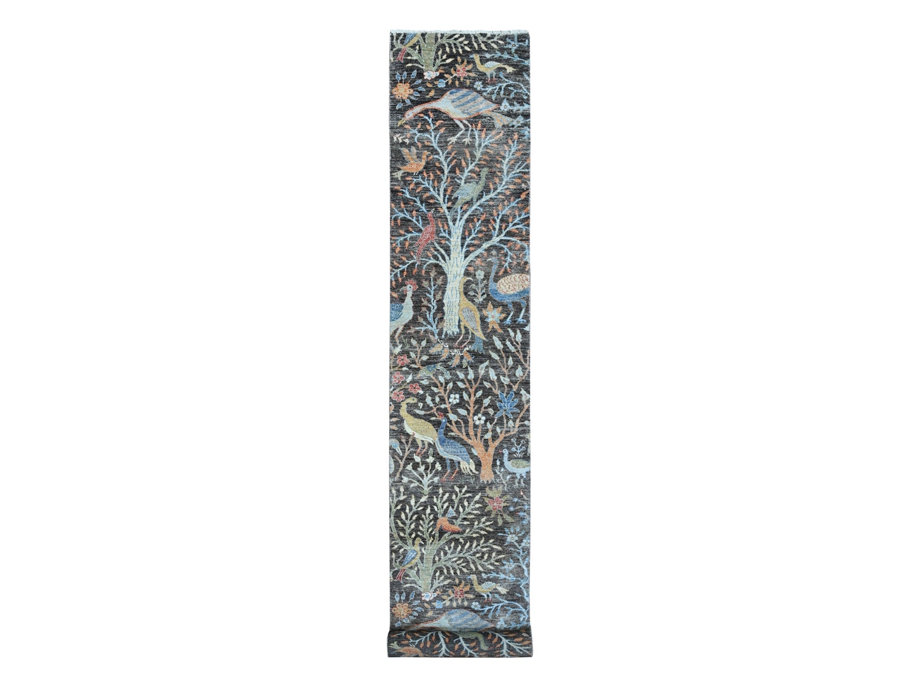 2'6" x 17'9" New Hand Knotted Grey Wool Runner Oriental Rug - MOA10289709