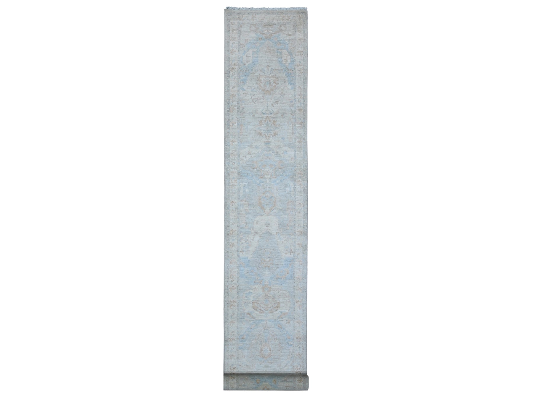 2'6" x 18'10" New Hand Knotted Grey Wool Runner Oriental Rug - MOA10289602