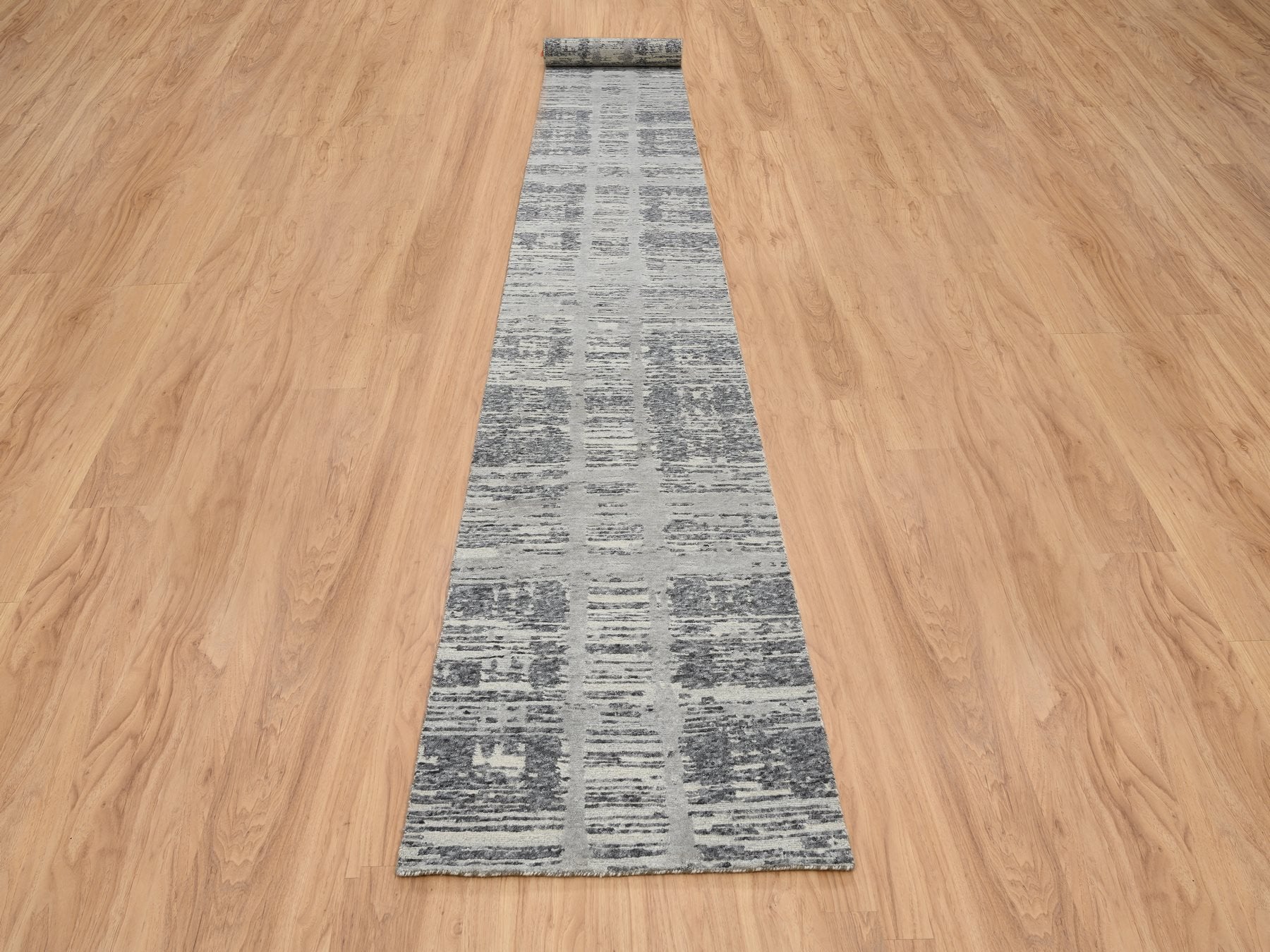 2'6" x 20'0" New Hand Knotted Grey Wool Runner Oriental Rug - MOA10264697