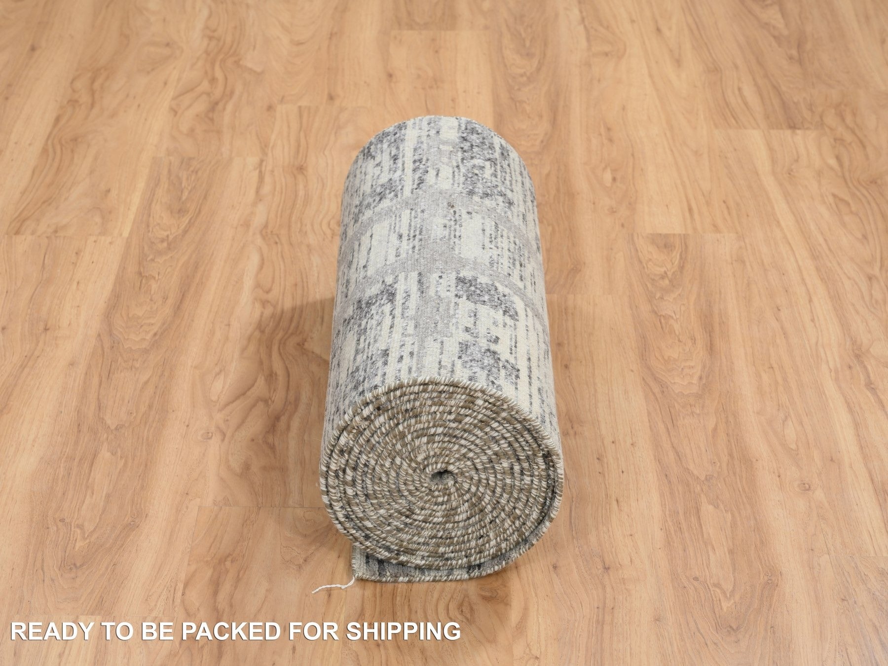 2'6" x 22'0" New Hand Knotted Grey Wool Runner Oriental Rug - MOA10264695