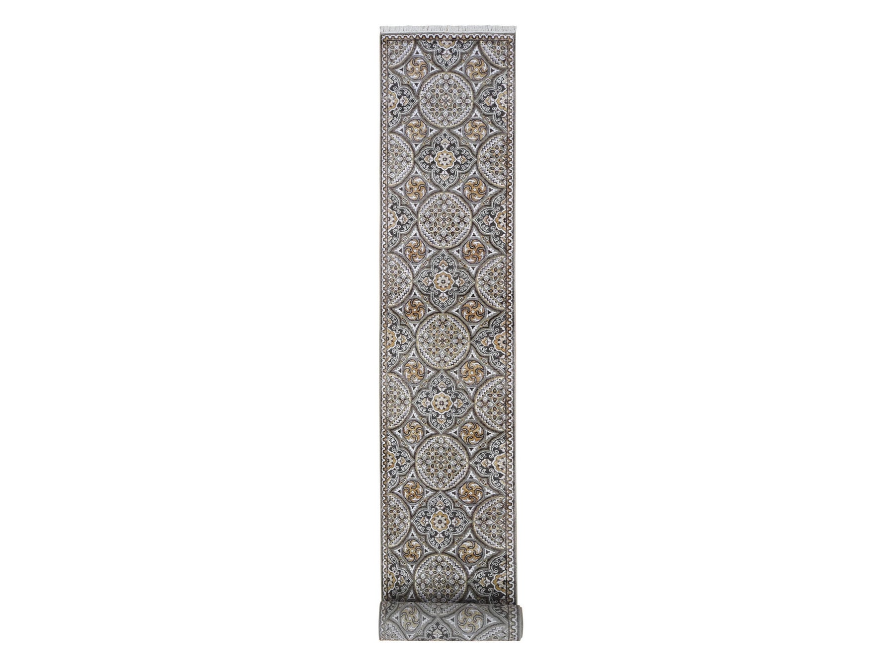 2'6" x 24'1" New Hand Knotted Brown Wool & Silk Runner Oriental Rug - MOA10266721