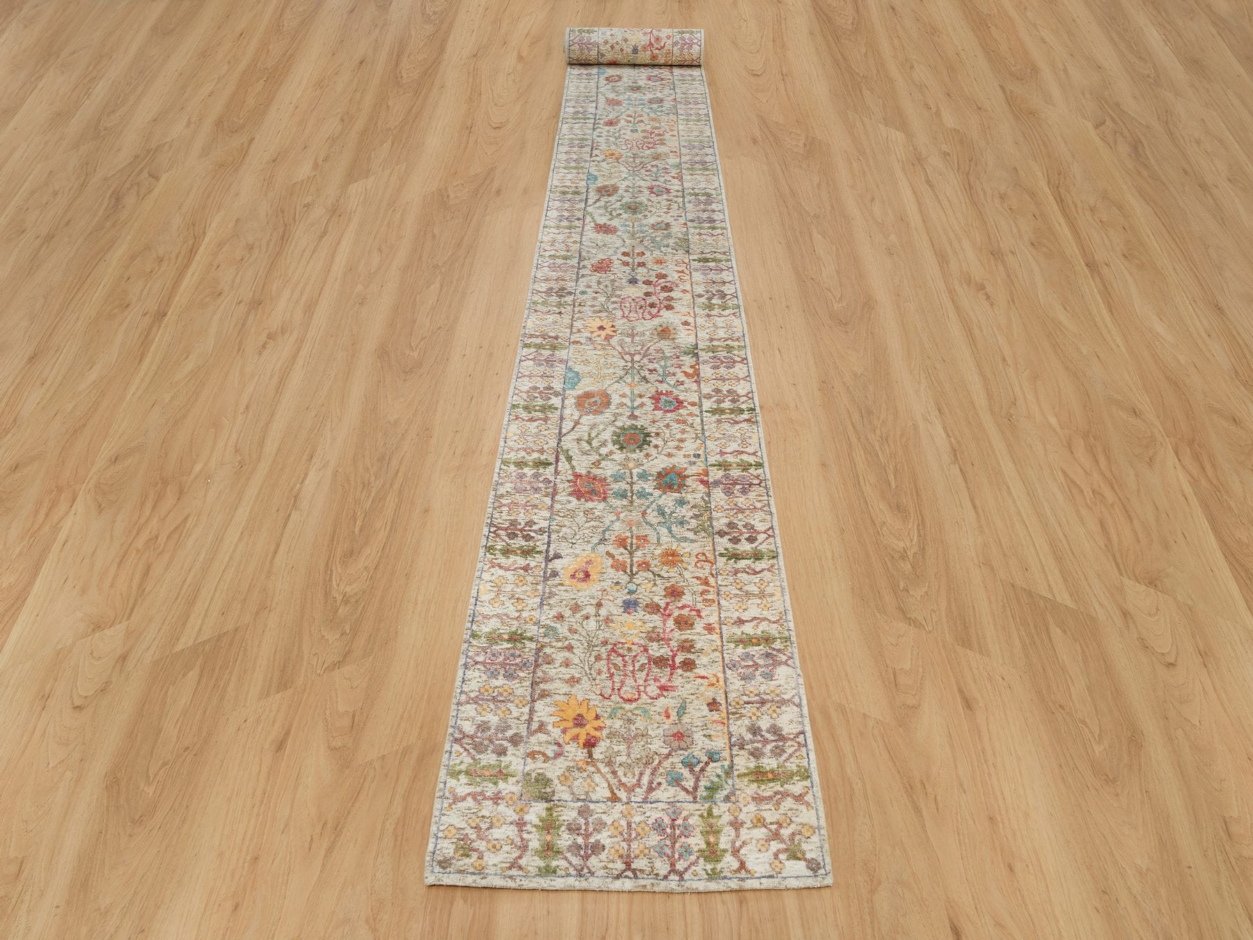2'6" x 25'10" New Hand Knotted Beige Wool & Silk Runner Oriental Rug - MOA10290237