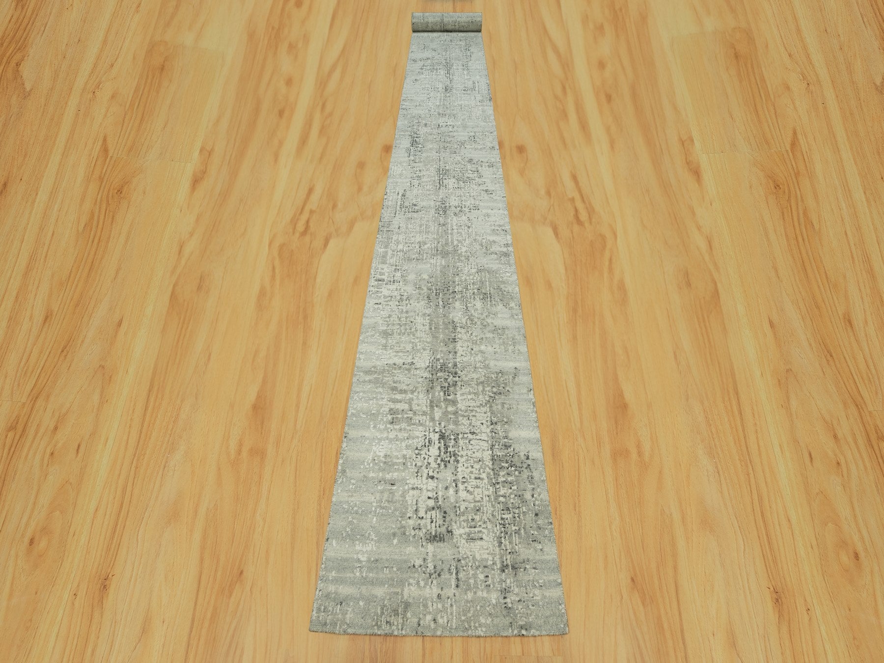 2'6" x 25'9" New Hand Knotted Grey Wool Runner Oriental Rug - MOA10290418