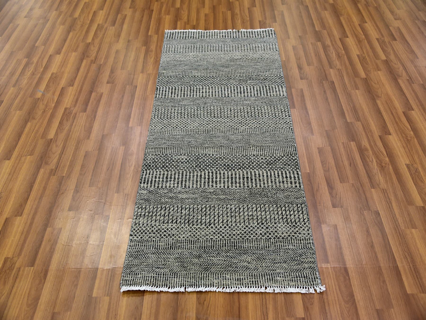 2'6" x 5'10" New Hand Knotted Grey Wool Runner Oriental Rug - MOA10279707