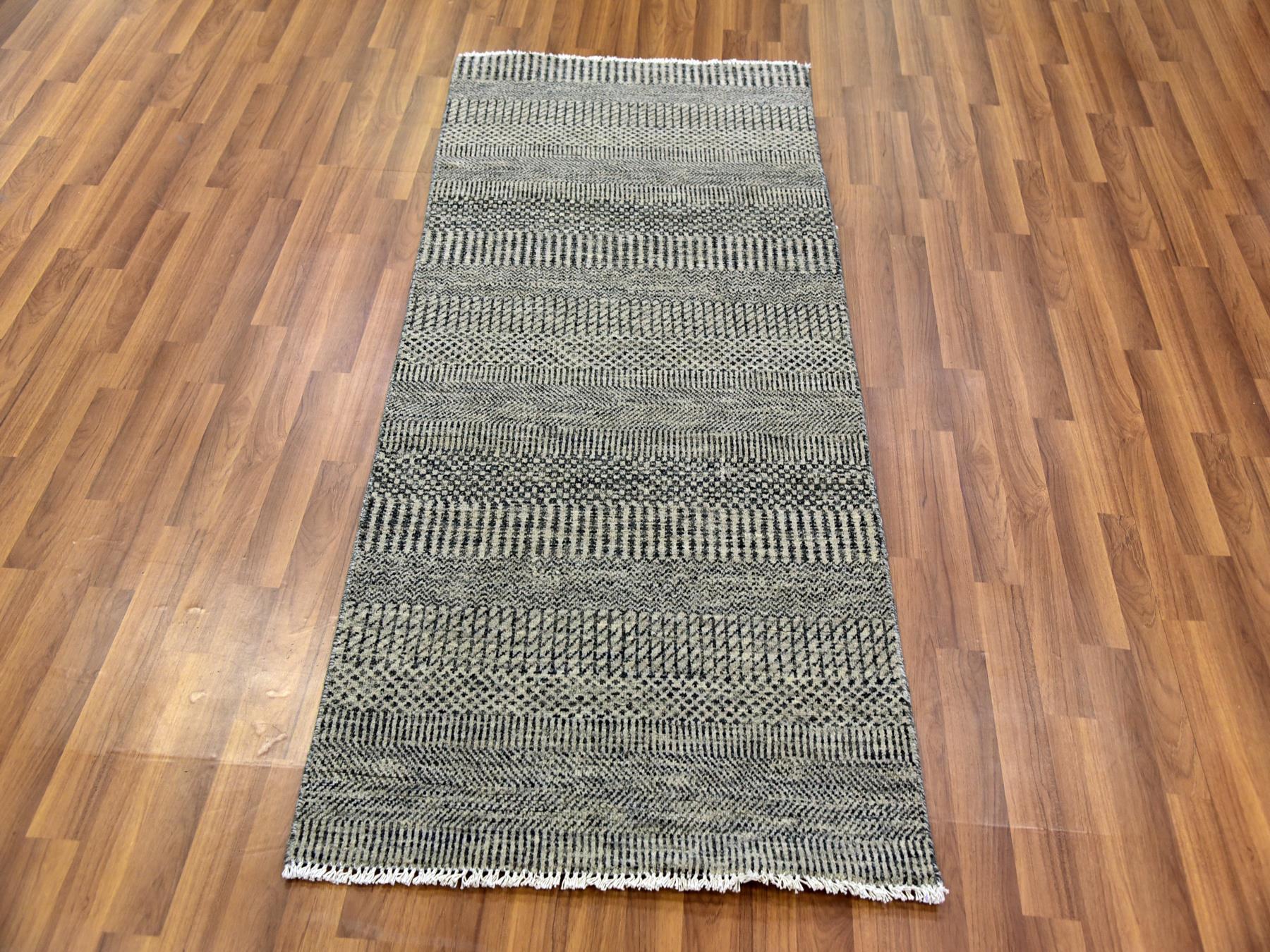 2'6" x 5'10" New Hand Knotted Grey Wool Runner Oriental Rug - MOA10279708