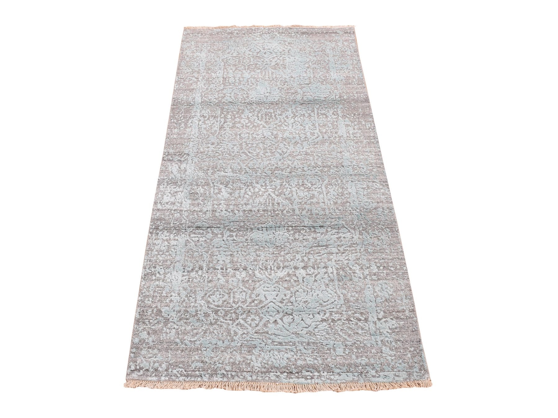 2'6" x 5'8" New Hand Knotted Green Wool & Silk Runner Oriental Rug - MOA10287329