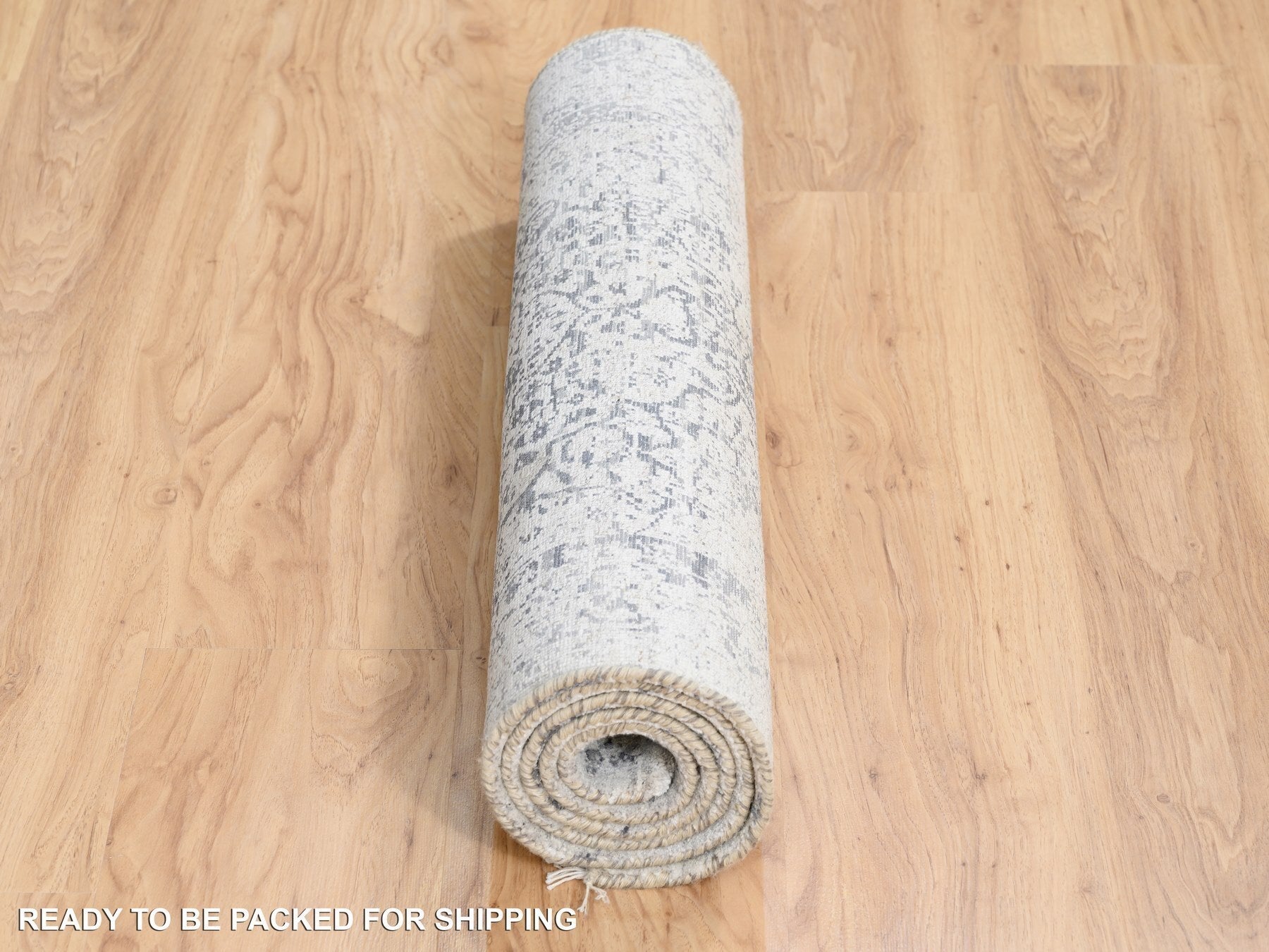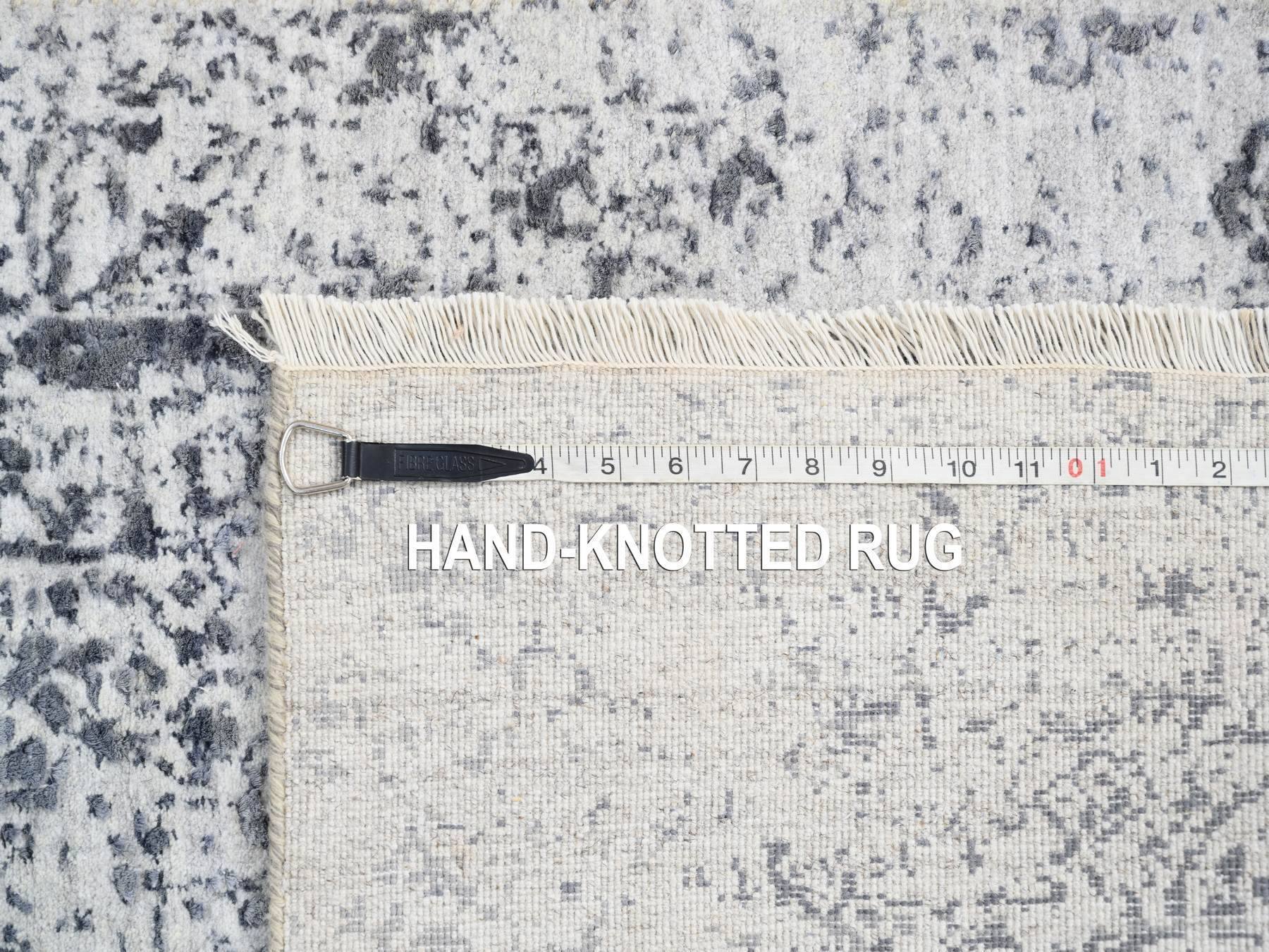 2'6" x 6'0" New Hand Knotted Grey Wool & Silk Runner Oriental Rug - MOA10263476