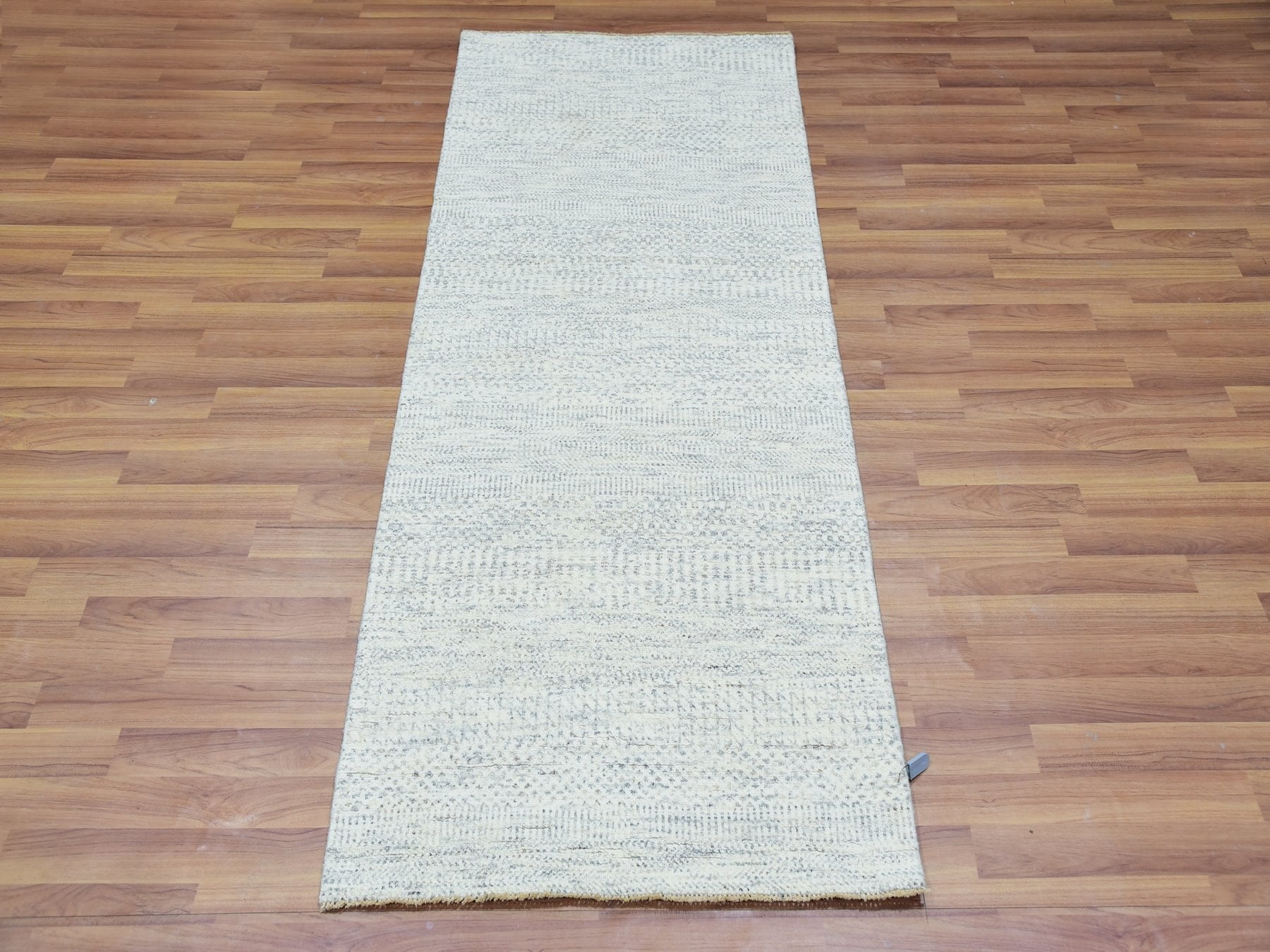 2'6" x 6'1" New Hand Knotted Grey Wool Runner Oriental Rug - MOA10279826