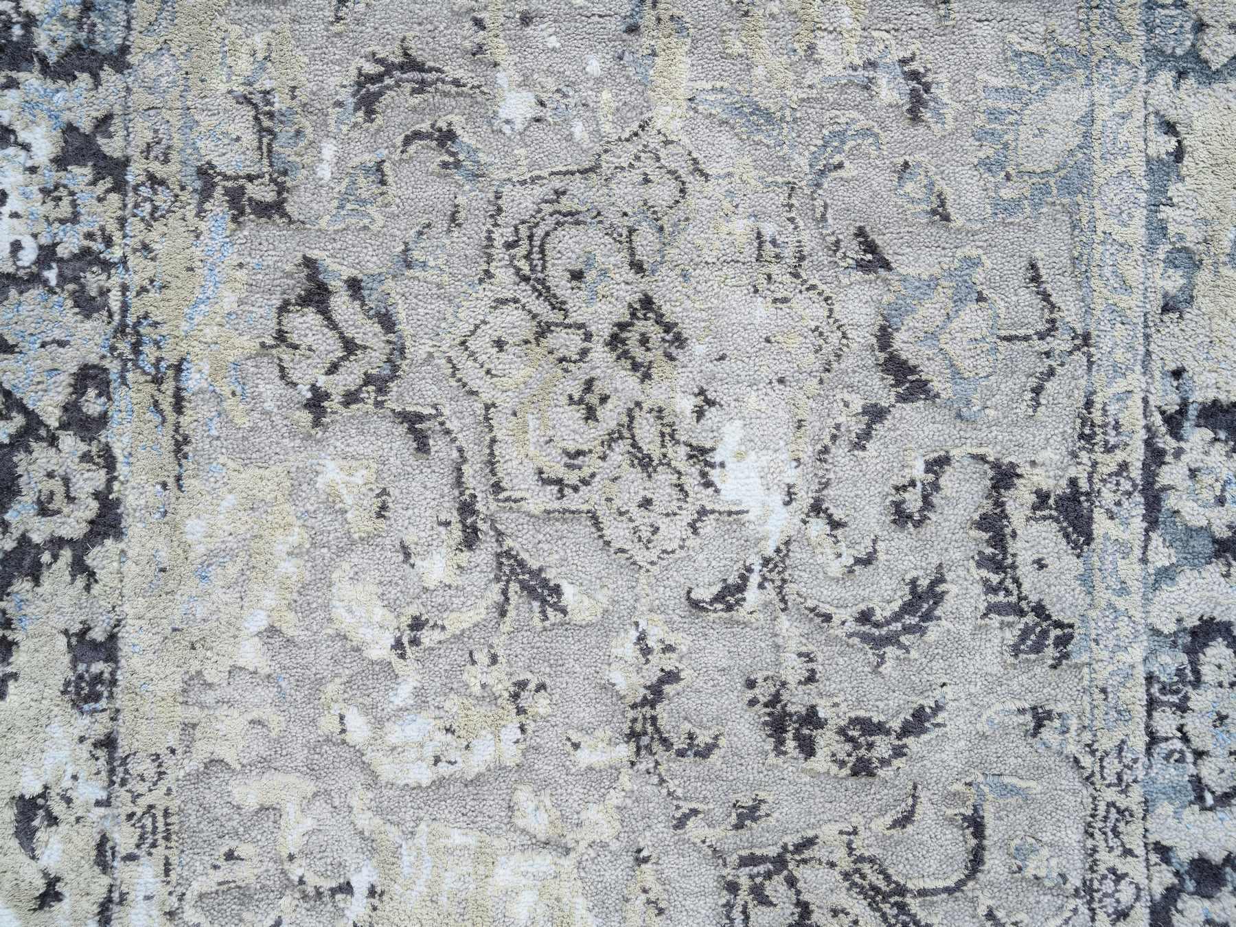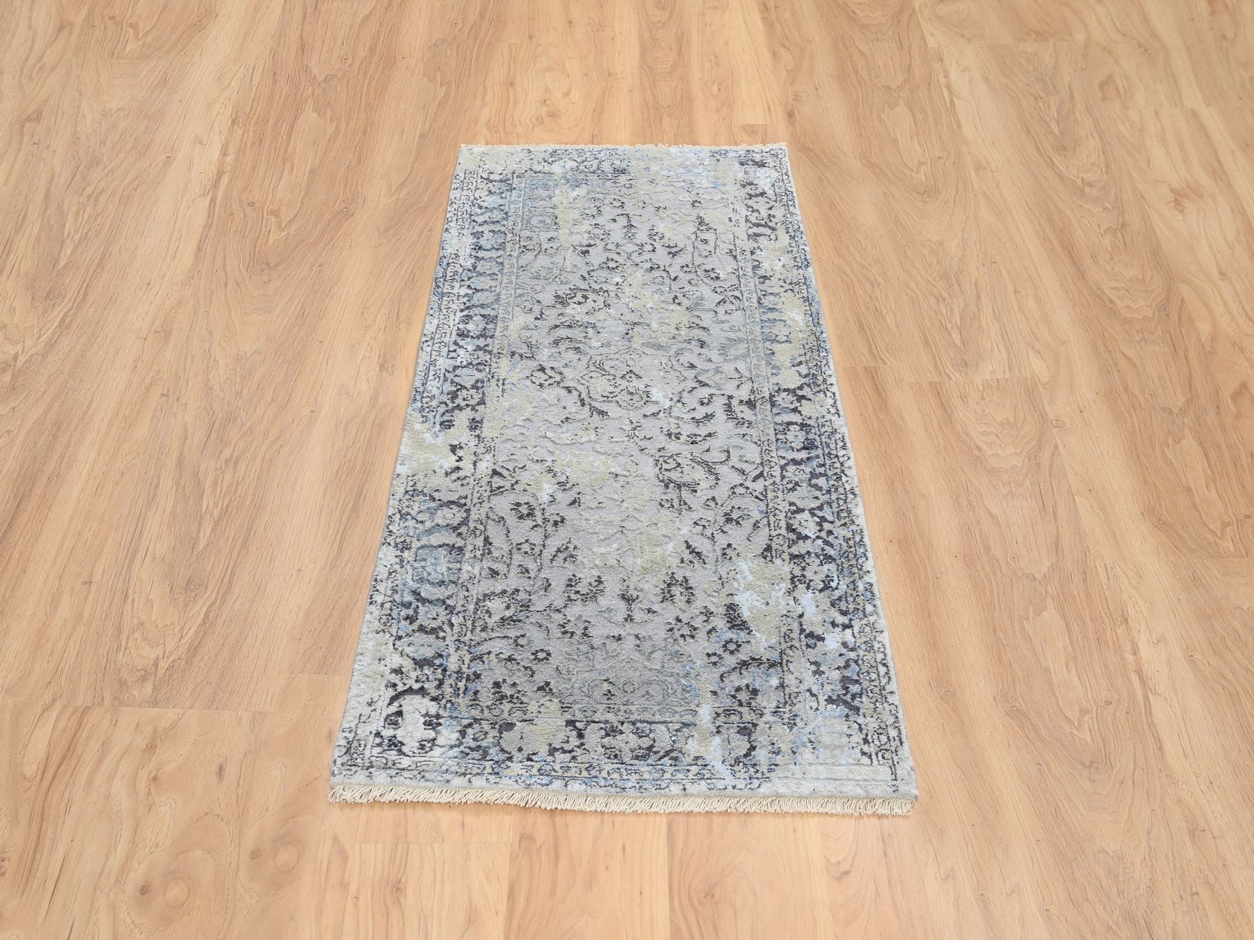 2'6" x 6'1" New Hand Knotted Grey Wool & Silk Runner Oriental Rug - MOA10264609