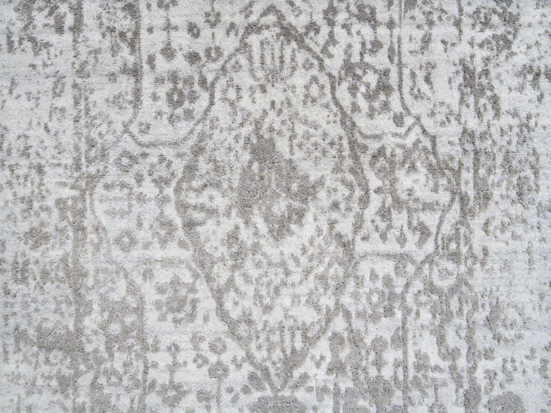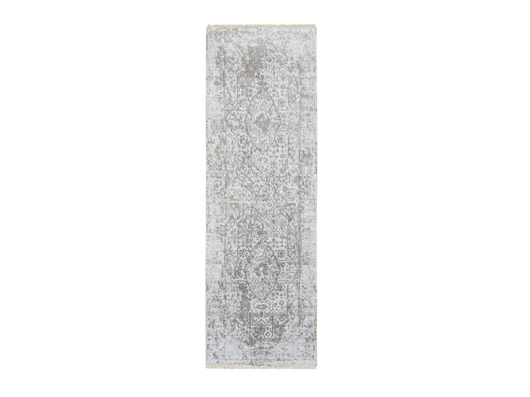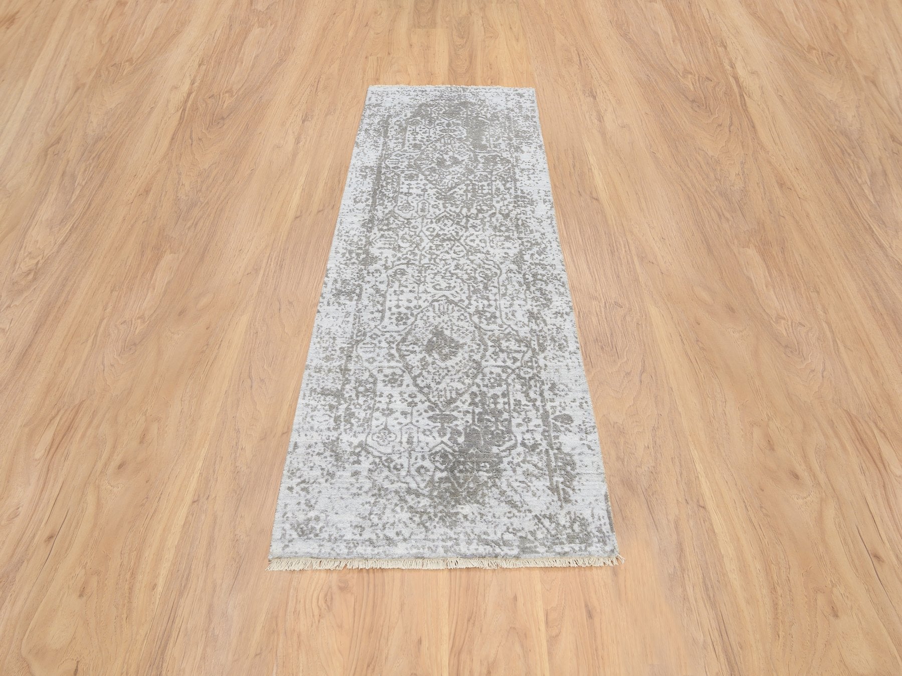 2'6" x 7'10" New Hand Knotted Grey Wool & Silk Runner Oriental Rug - MOA10264603