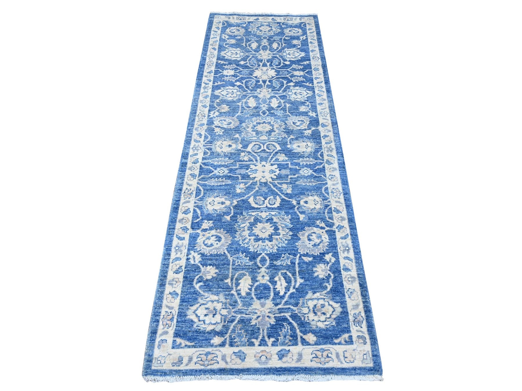 2'6" x 7'9" New Hand Knotted Blue Wool Runner Oriental Rug - MOA10288893