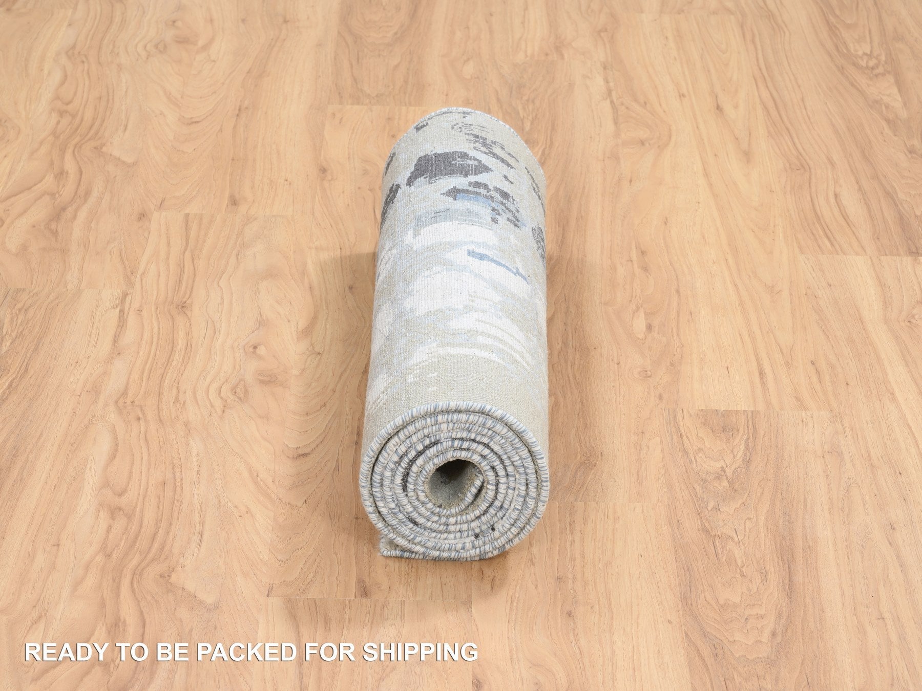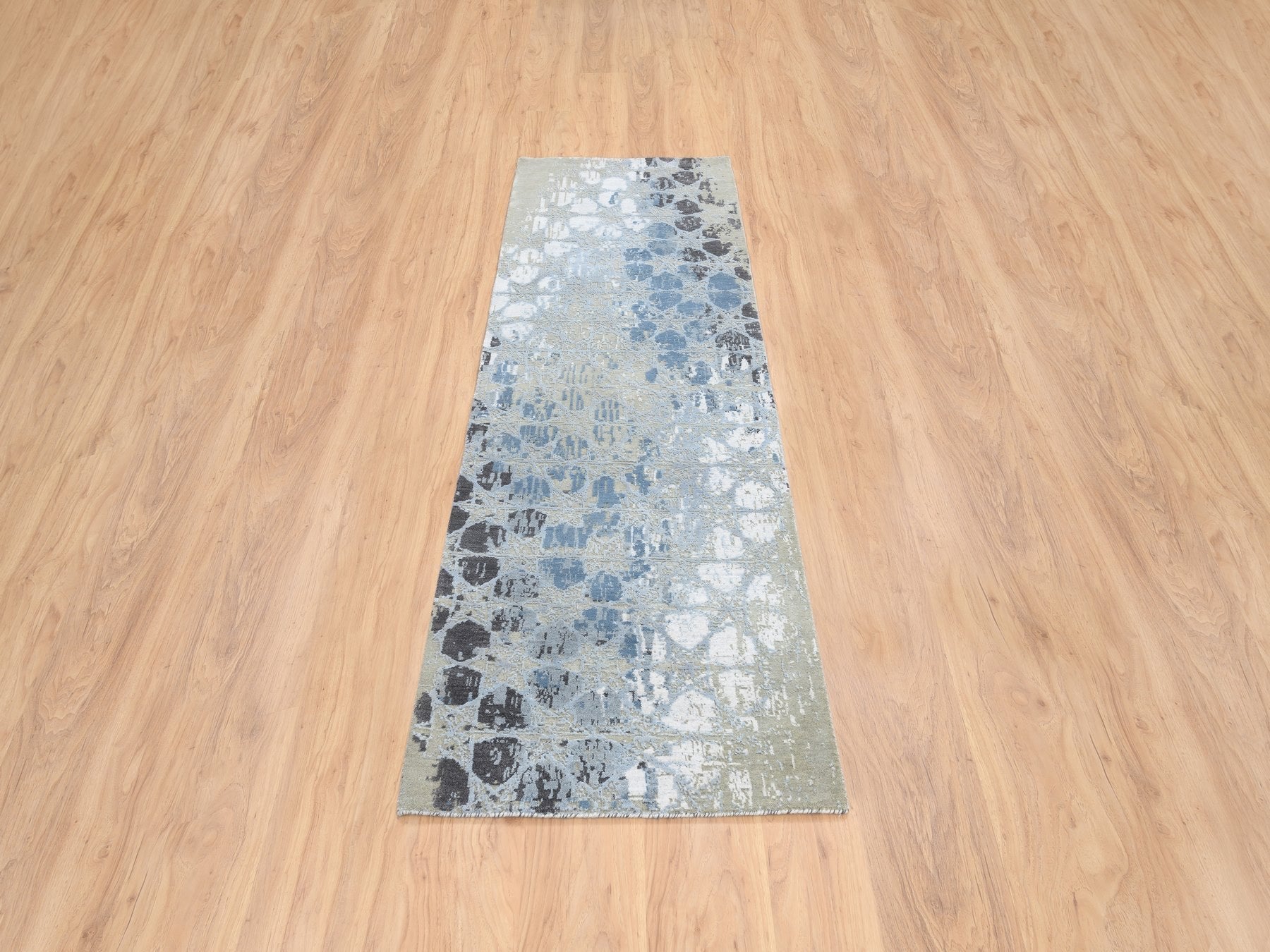 2'6" x 8'0" New Hand Knotted Grey Wool & Silk Runner Oriental Rug - MOA10264554