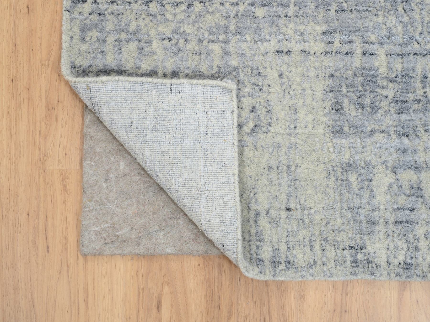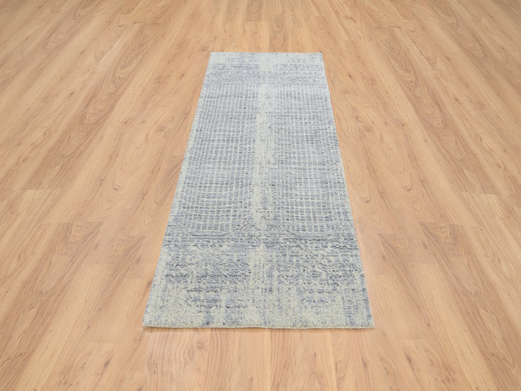 2'6" x 8'0" New Hand Loomed Grey Wool & Silk Runner Oriental Rug - MOA10263761