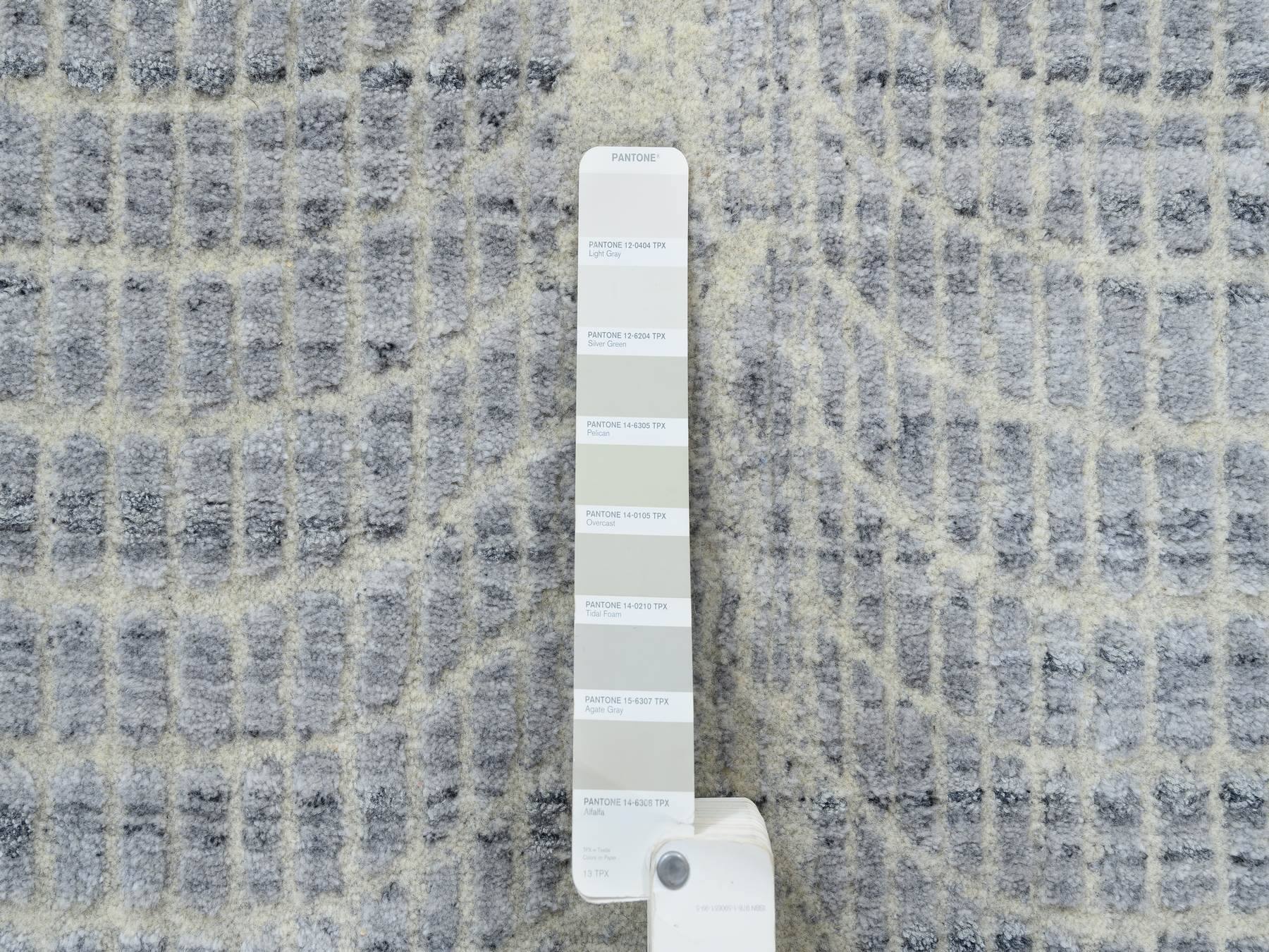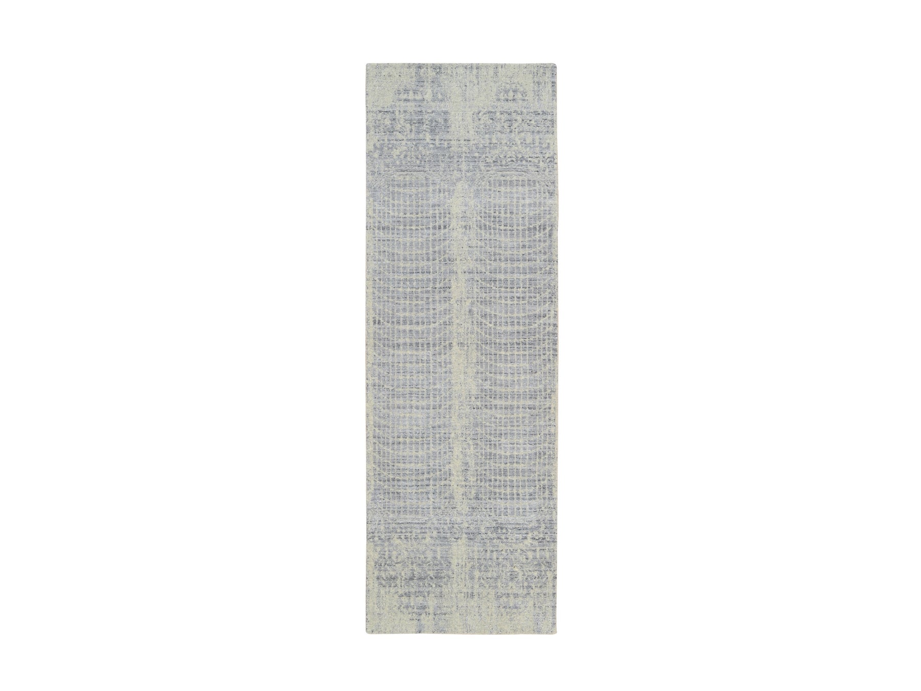 2'6" x 8'0" New Hand Loomed Grey Wool & Silk Runner Oriental Rug - MOA10263762