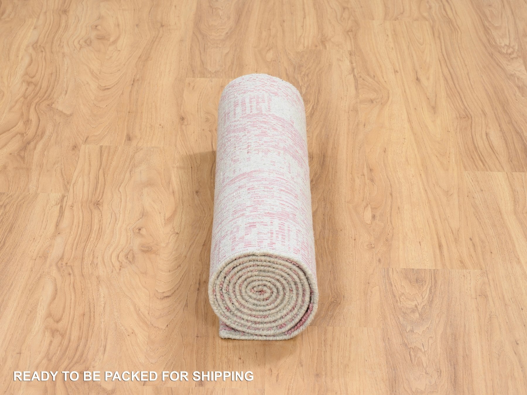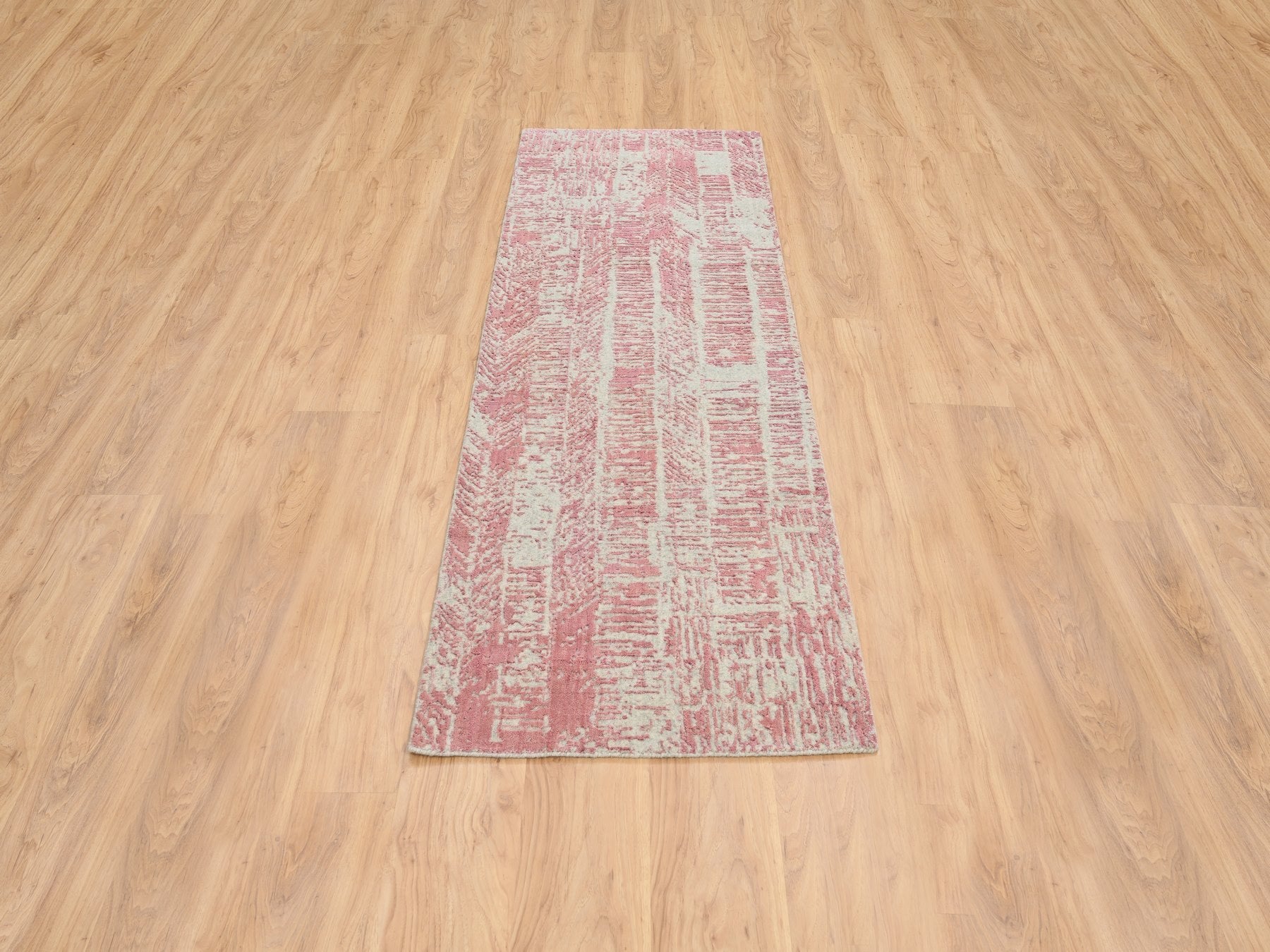 2'6" x 8'0" New Hand Loomed Pink Wool & Silk Runner Oriental Rug - MOA10264812