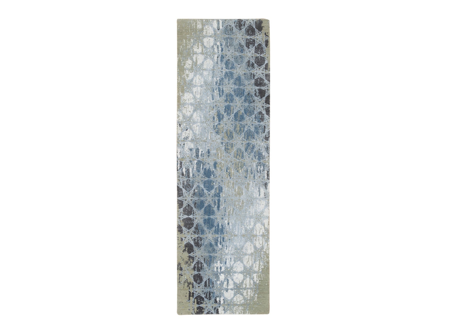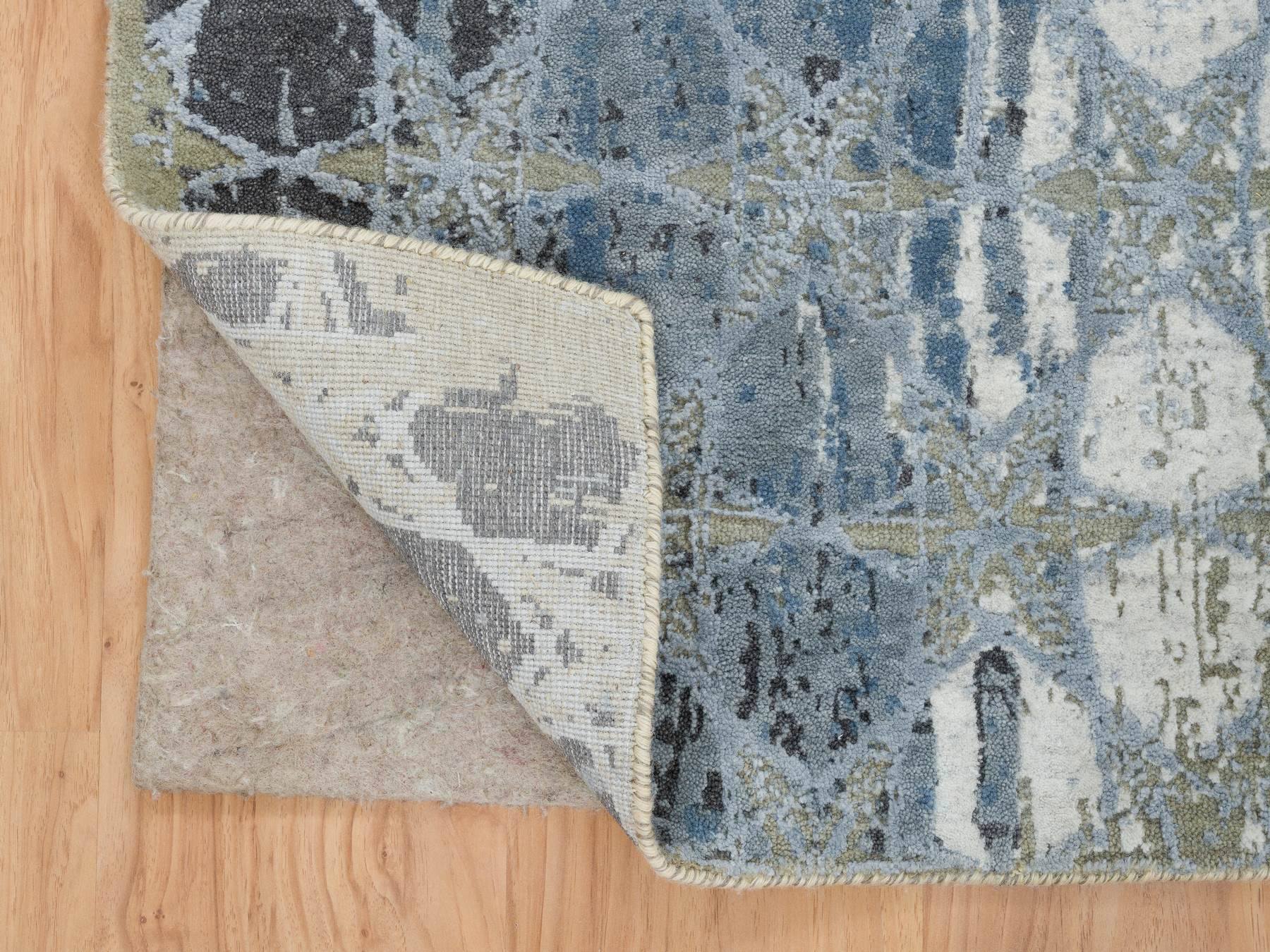 2'6" x 8'3" New Hand Knotted Grey Wool & Silk Runner Oriental Rug - MOA10265027