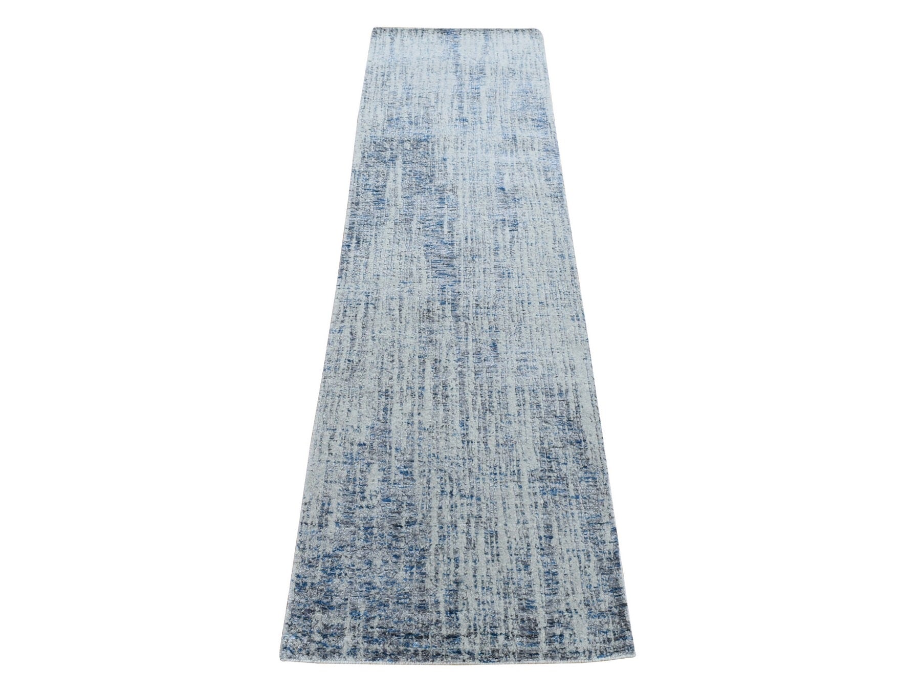 2'6" x 9'8" New Hand Loomed Blue Wool & Art Silk Runner Oriental Rug - MOA10280274