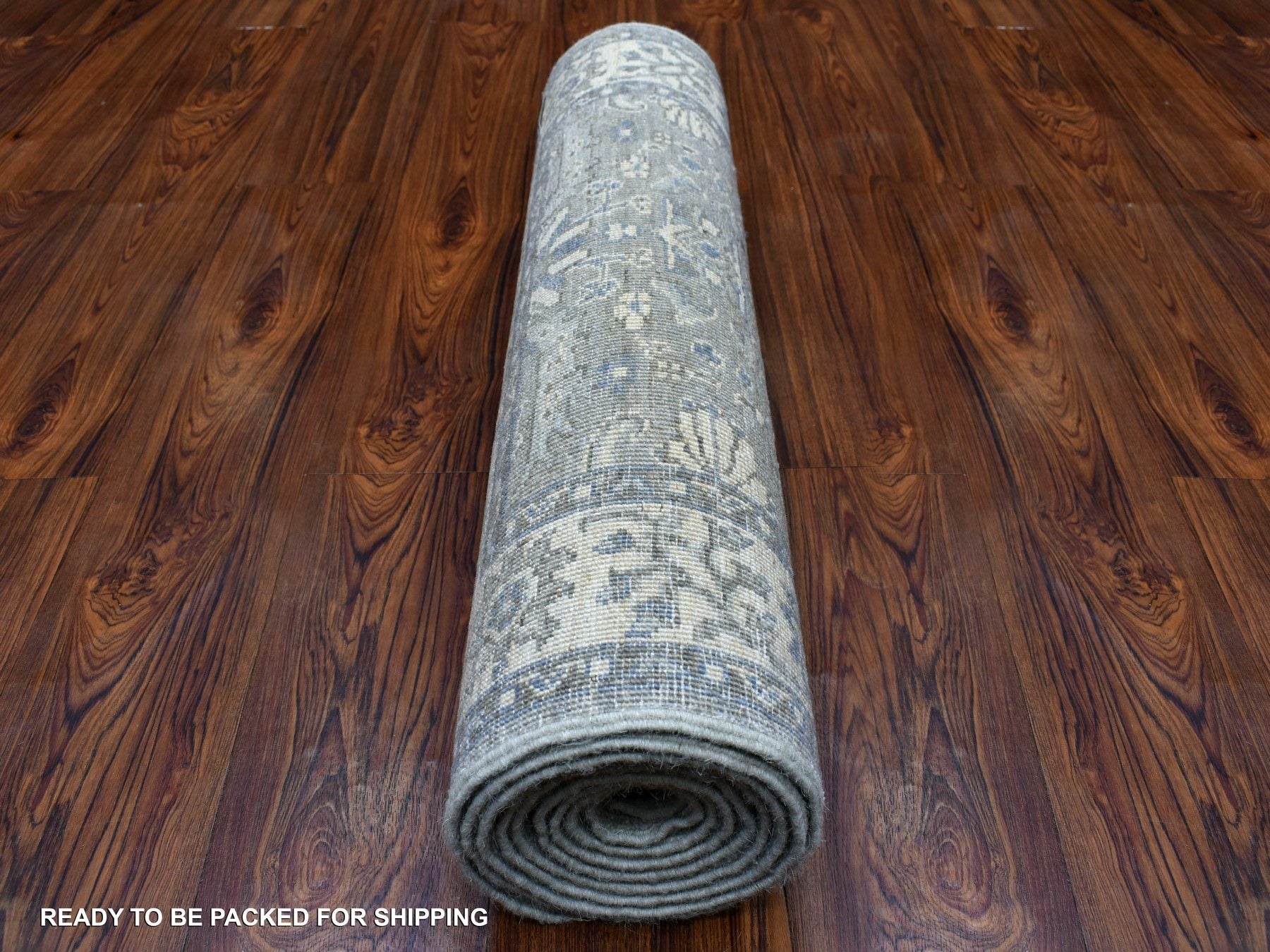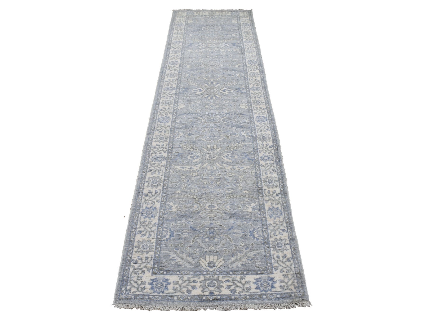 2'6" x 9'9" New Hand Knotted Grey Wool Runner Oriental Rug - MOA10268596