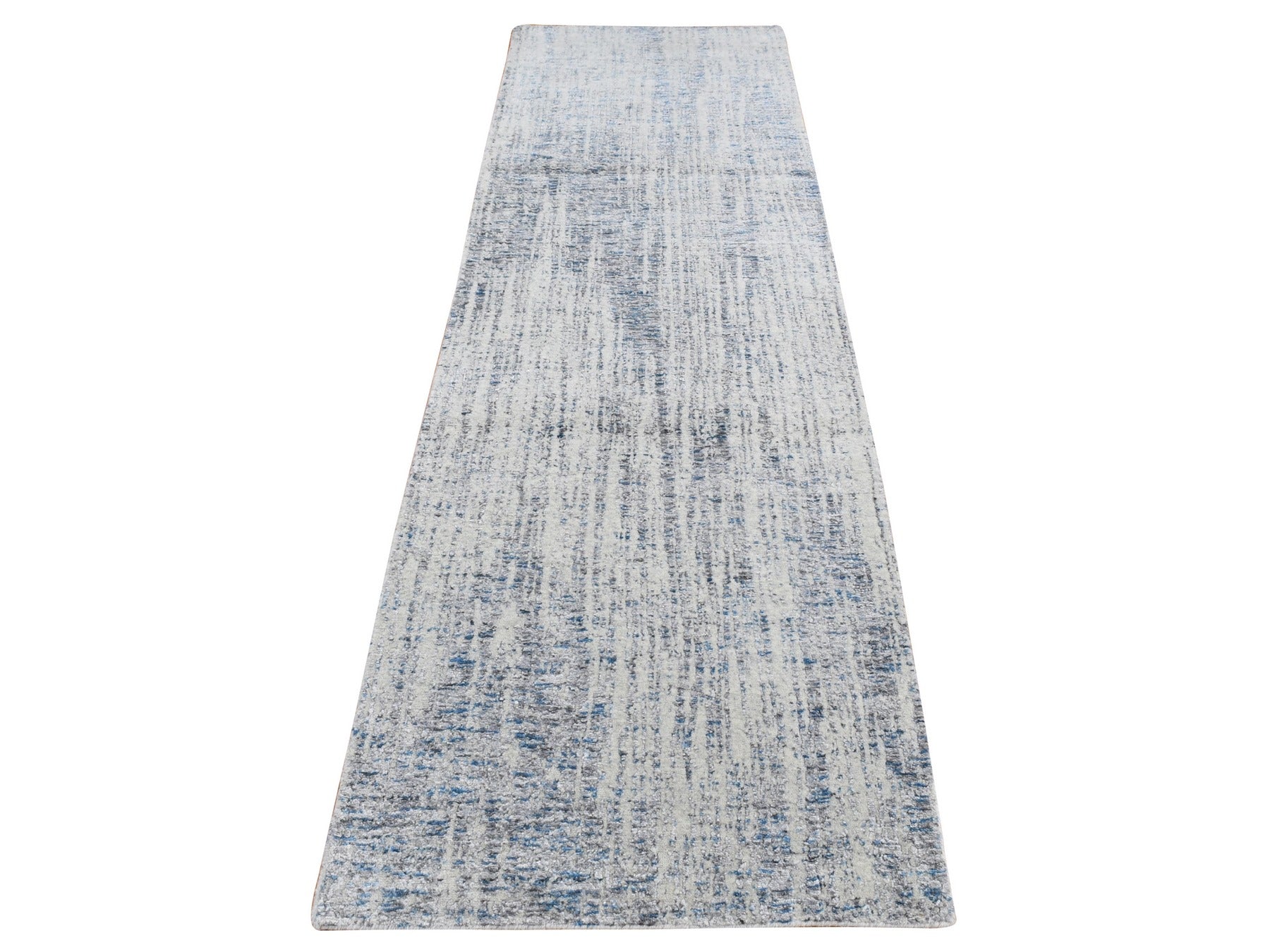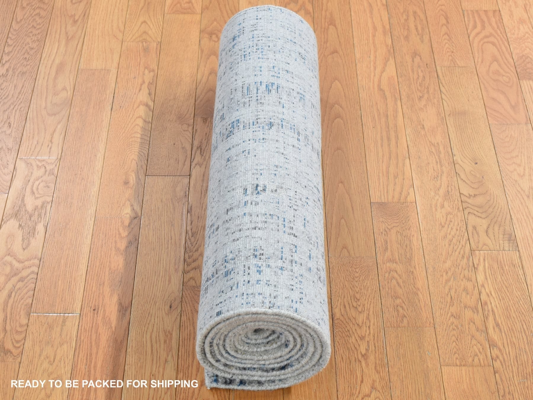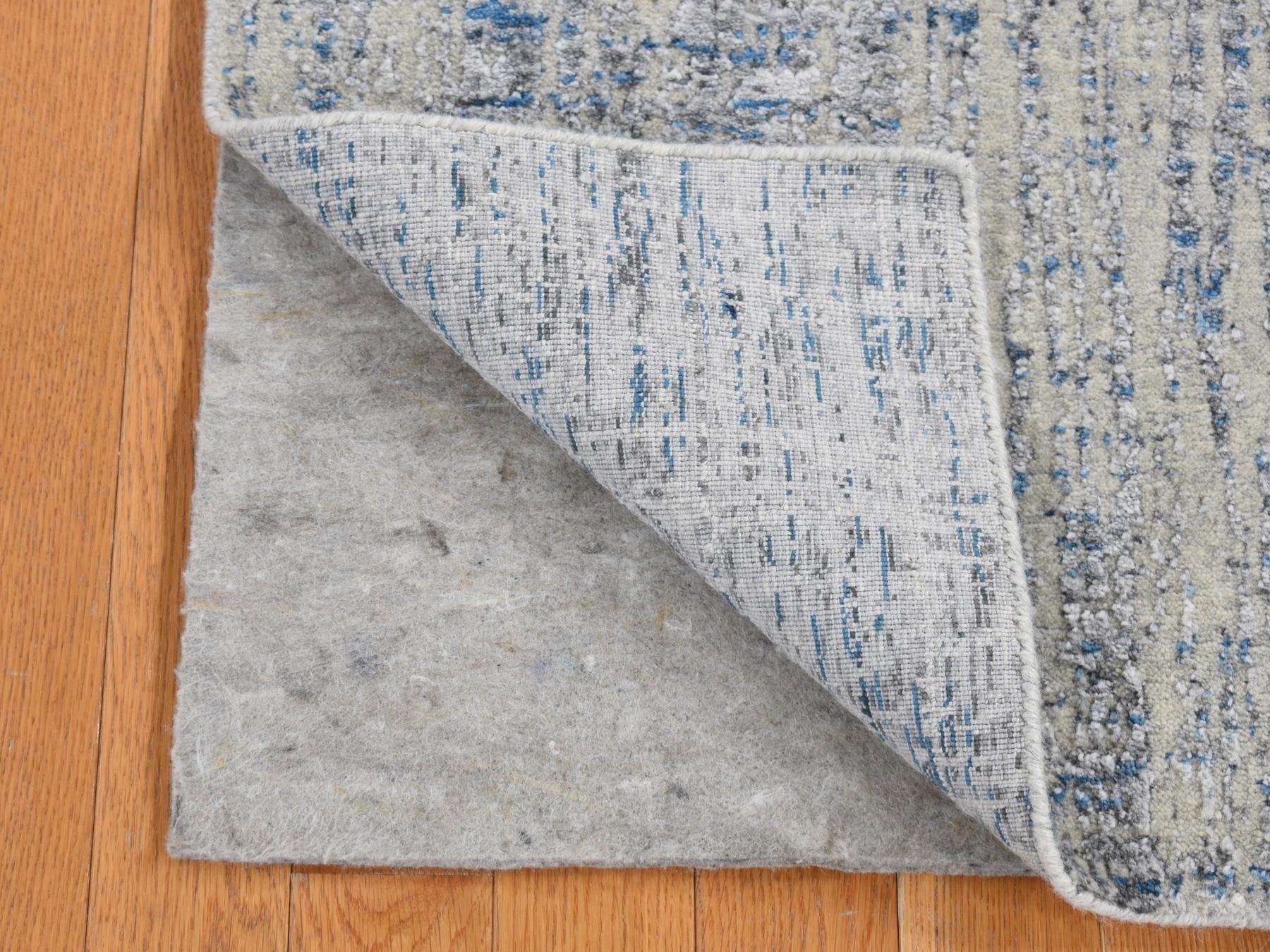 2'6" x 9'9" New Hand Loomed Grey Wool & Silk Runner Oriental Rug - MOA10287268