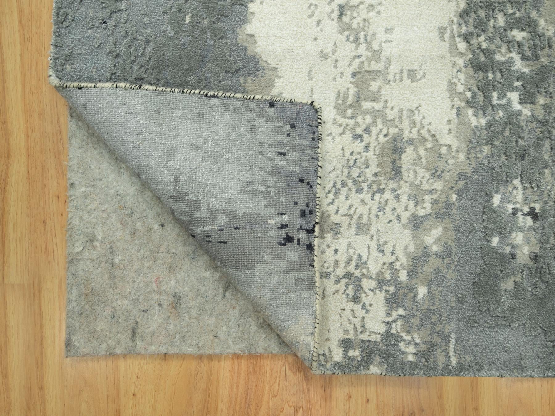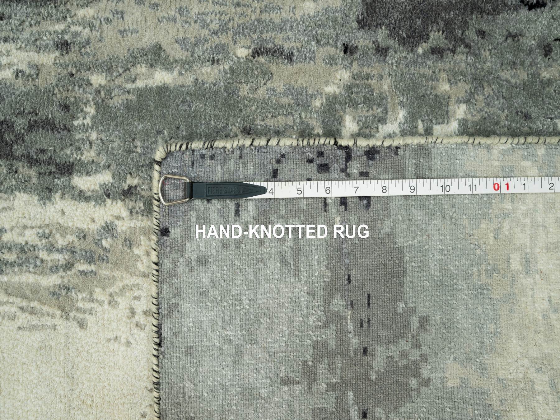 2'7" x 10'0" New Hand Knotted Black Wool & Silk Runner Oriental Rug - MOA10290465